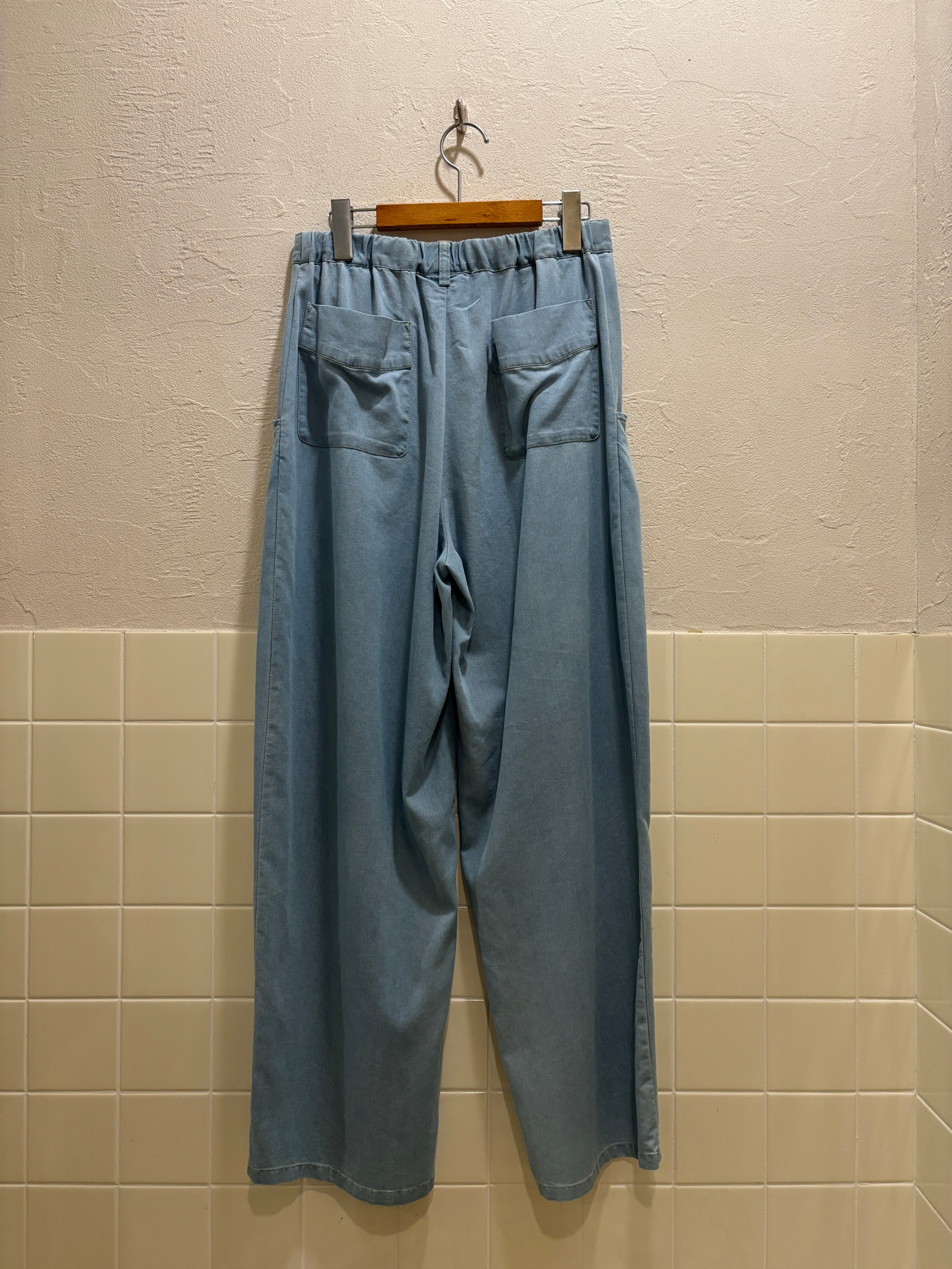リラックス感と上品さを兼ね備えたデニム風パンツ!軽やかで柔らかな素材感が魅力。