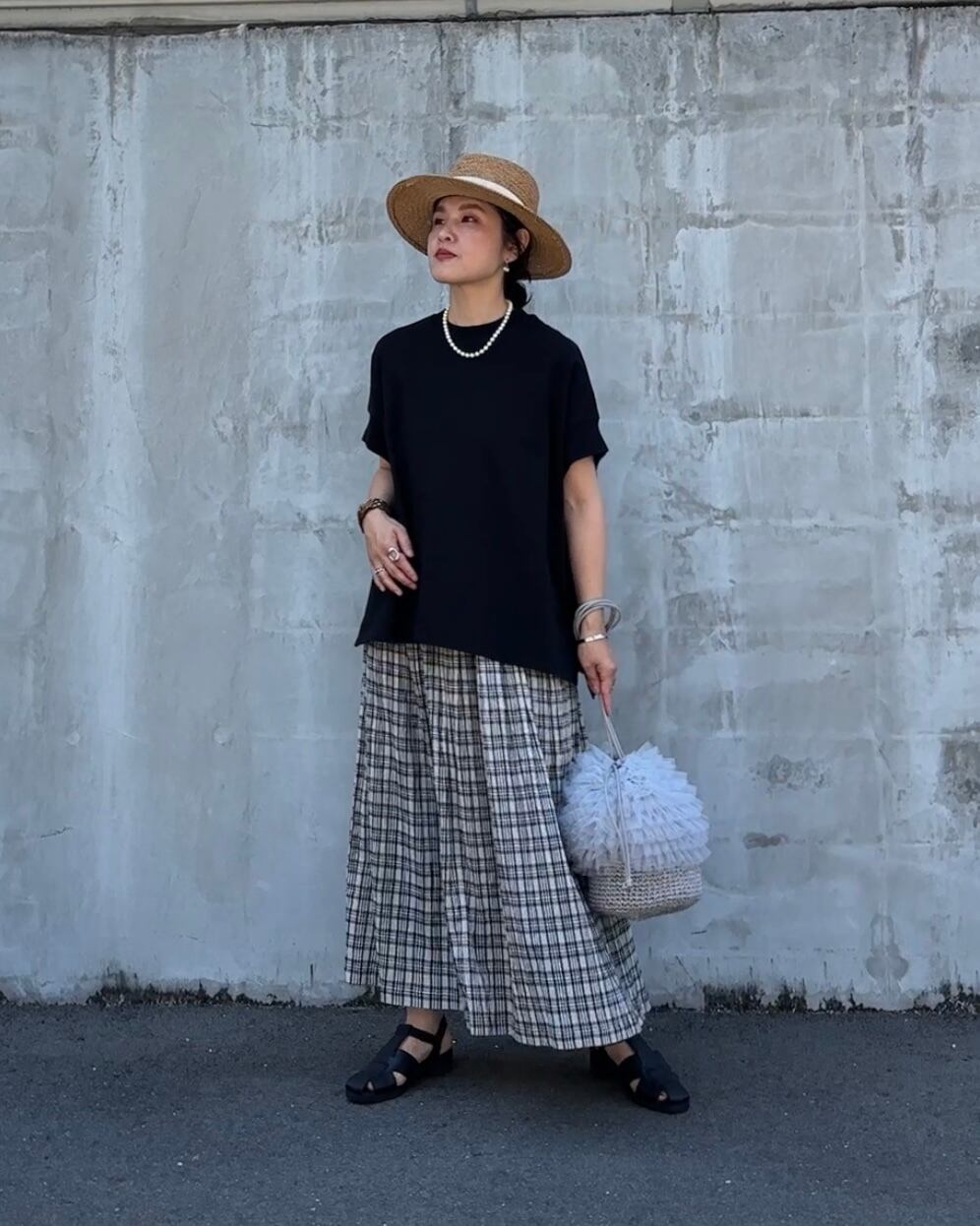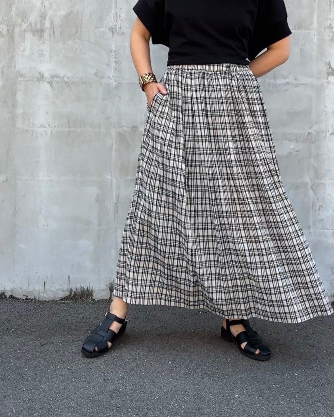 ナチュラルなチェック柄は、大人のカジュアルスタイルにぴったりです。
