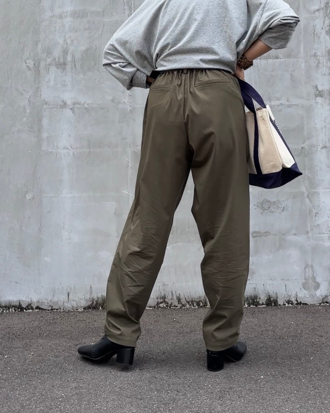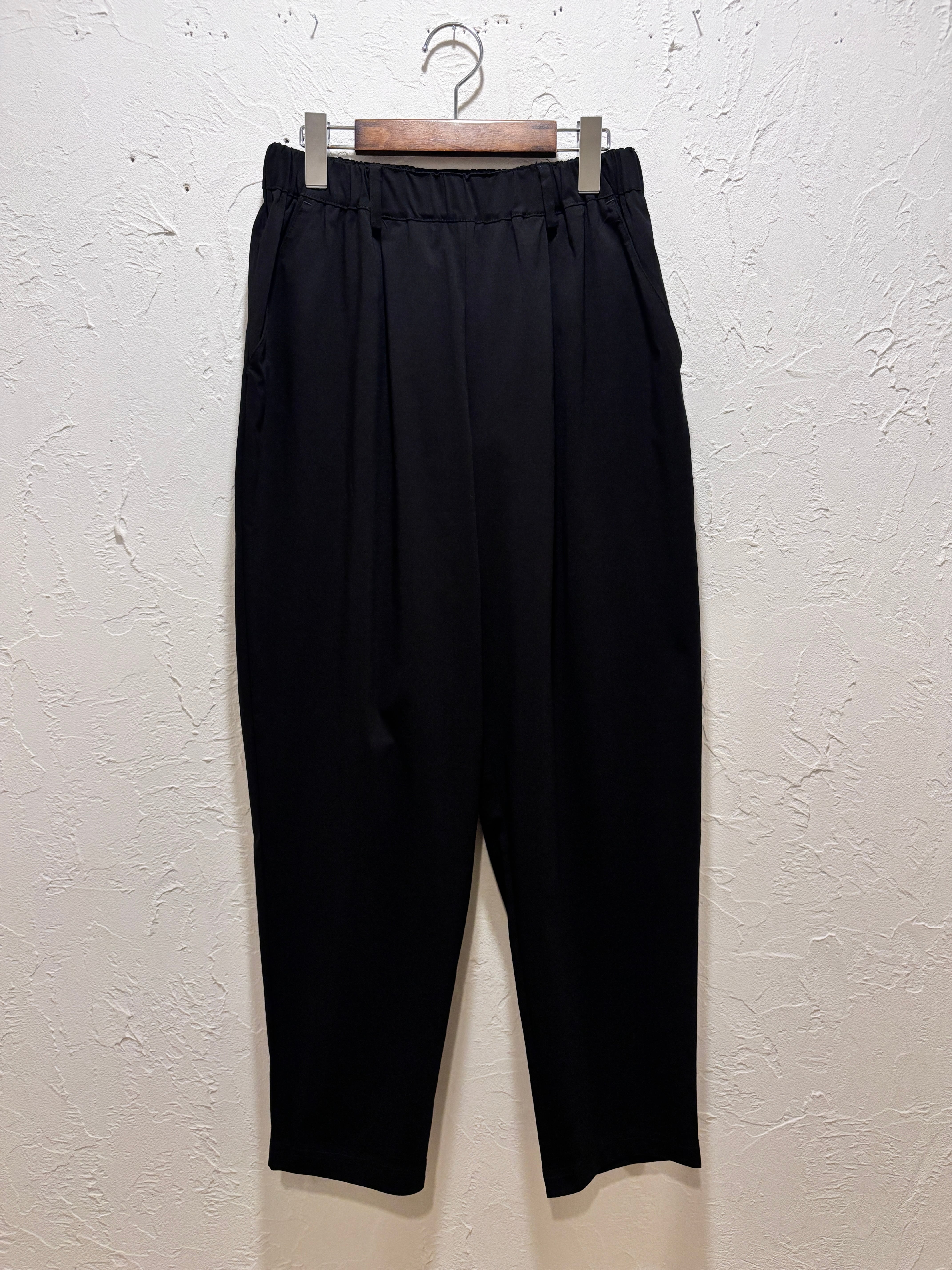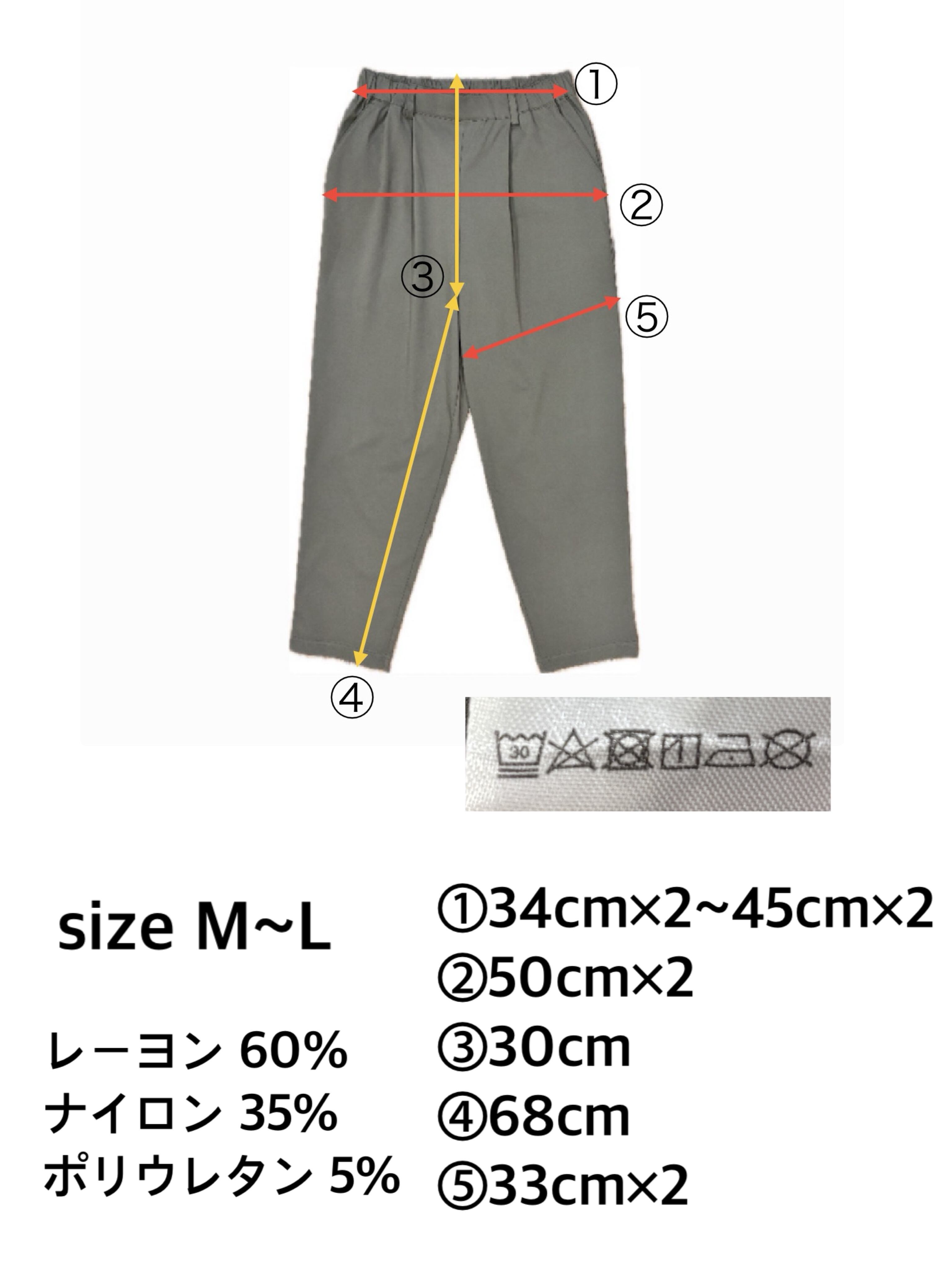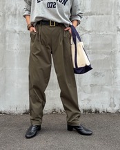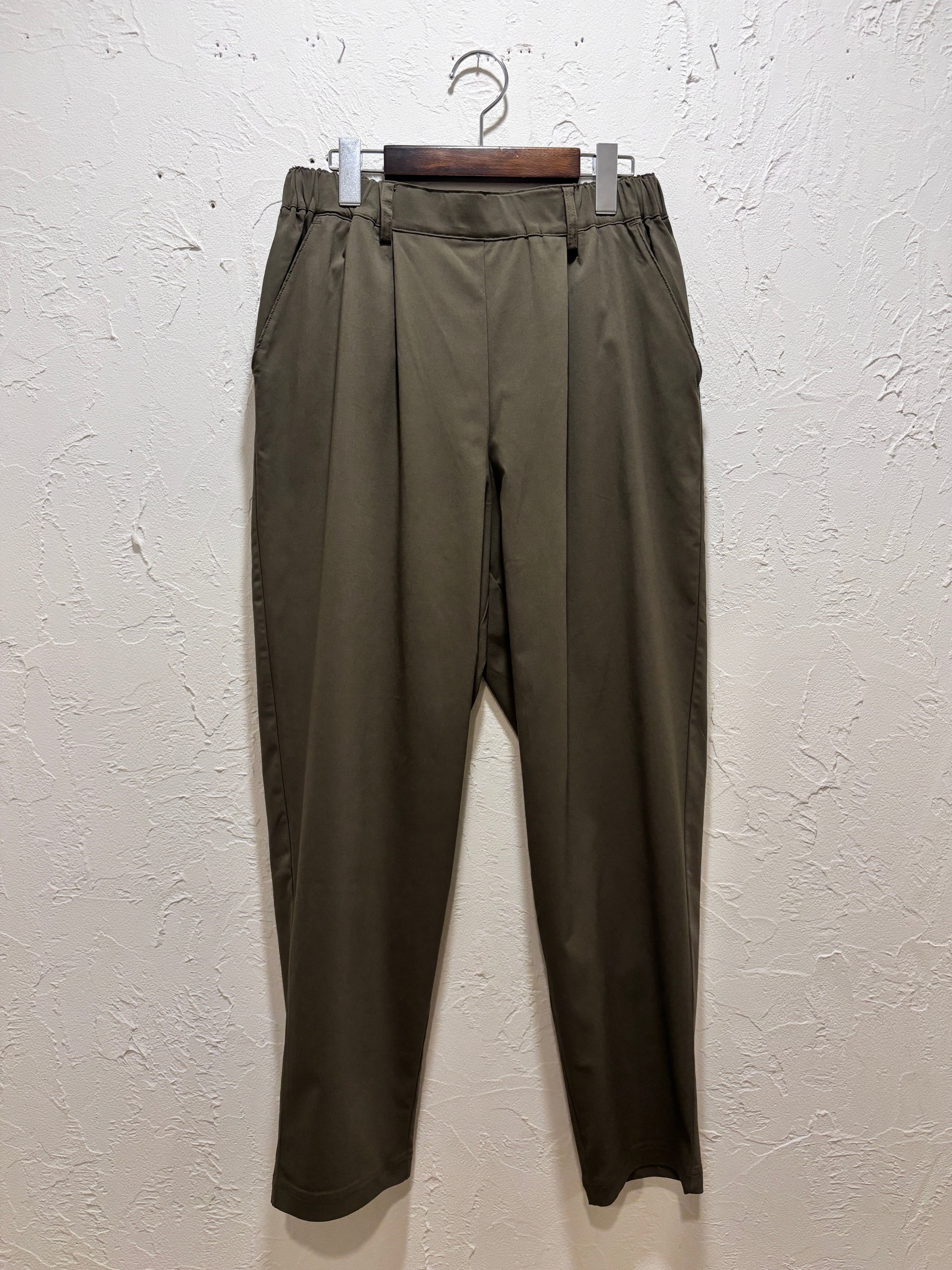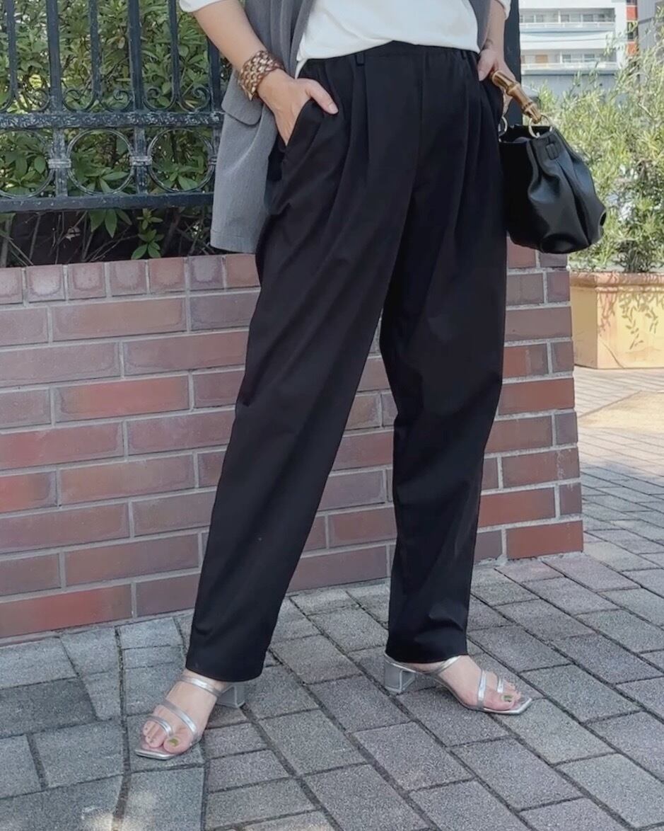 フロントにはタックを入れ、腰まわりにほどよいゆとりを持たせながらも、裾に向かって細くなるラインで脚をすっきり見せてくれます。