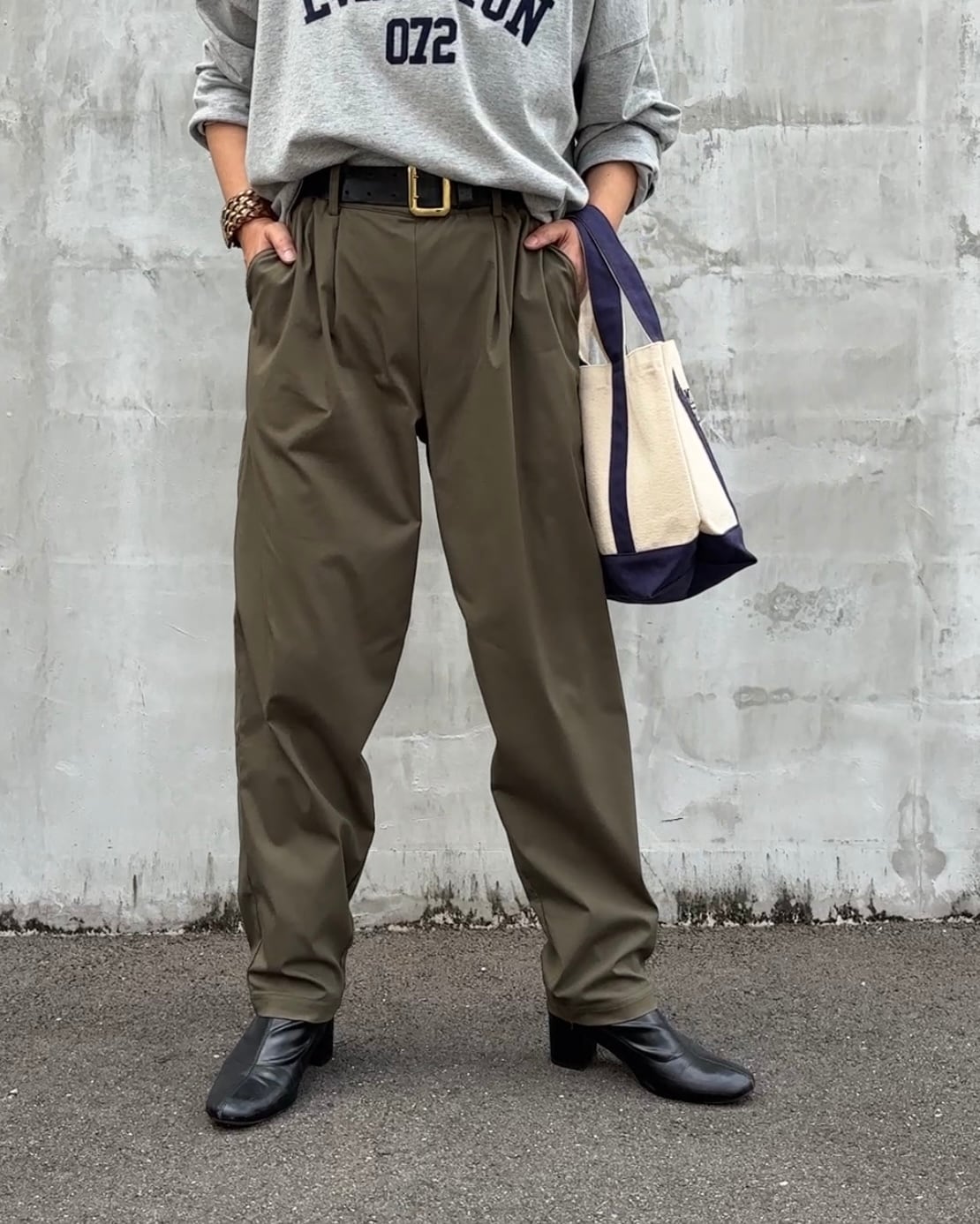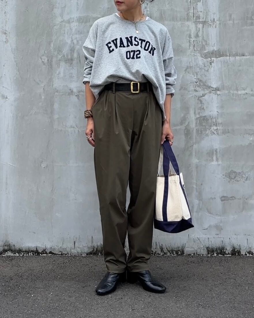 カーキとブラックのベーシックな2色展開で、オンオフ問わず着回しやすい一本です。