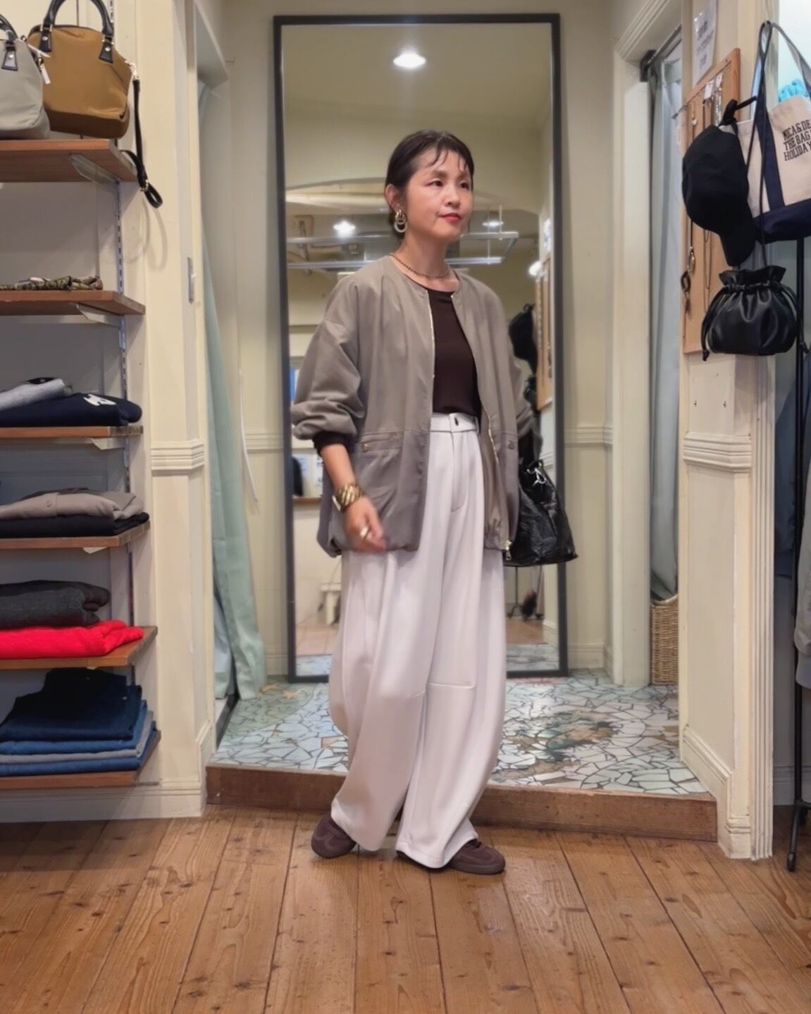 パンツスタイルからワンピースまで幅広く合わせやすく、季節の変わり目に活躍するライトアウター入荷してます。