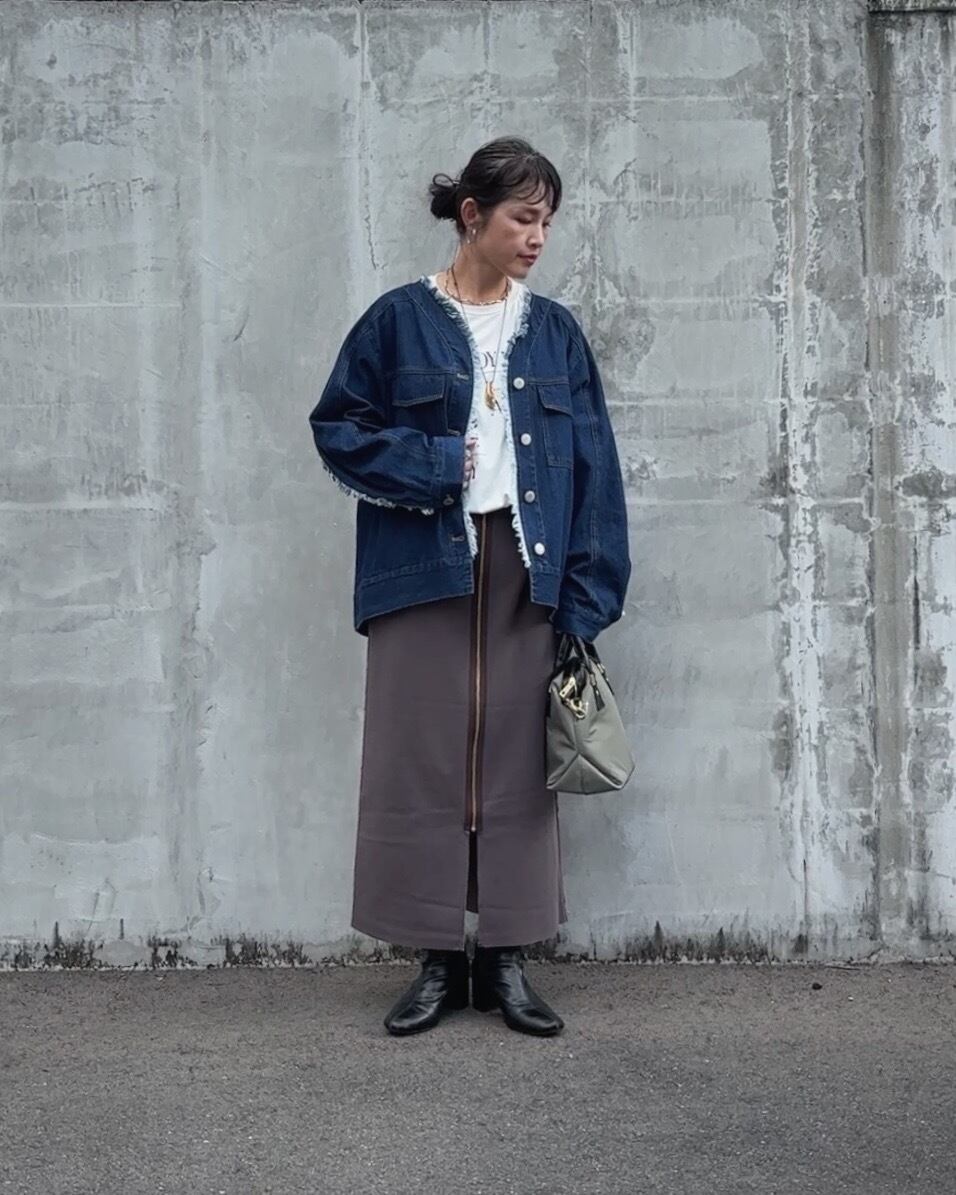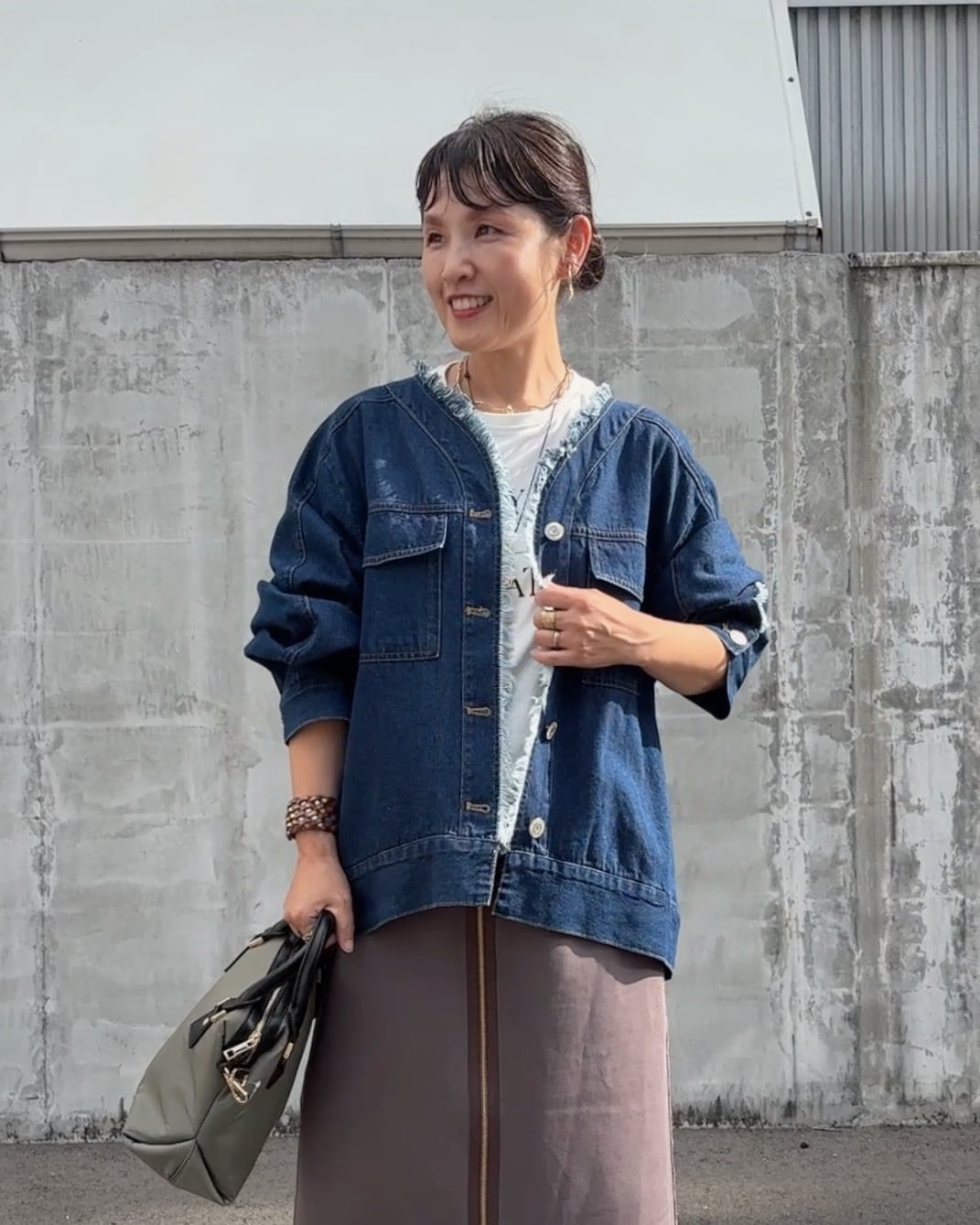 ノーカラーで顔まわりをすっきり見せてくれます。