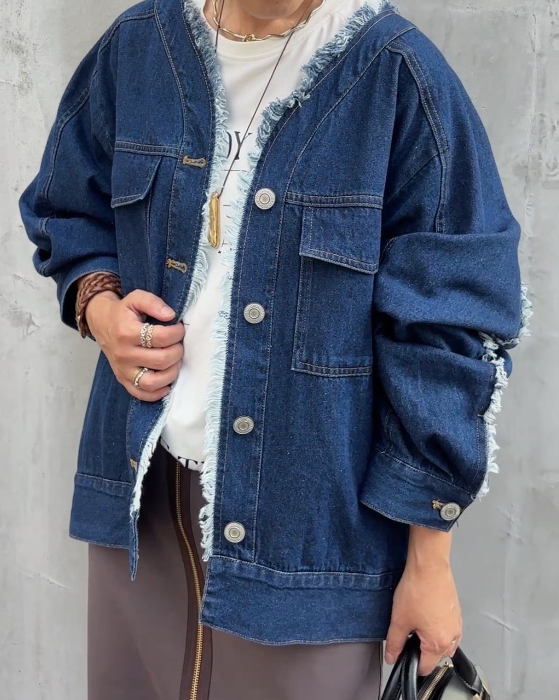 フリンジデザインがアクセントになったデニムジャケット入荷してます。