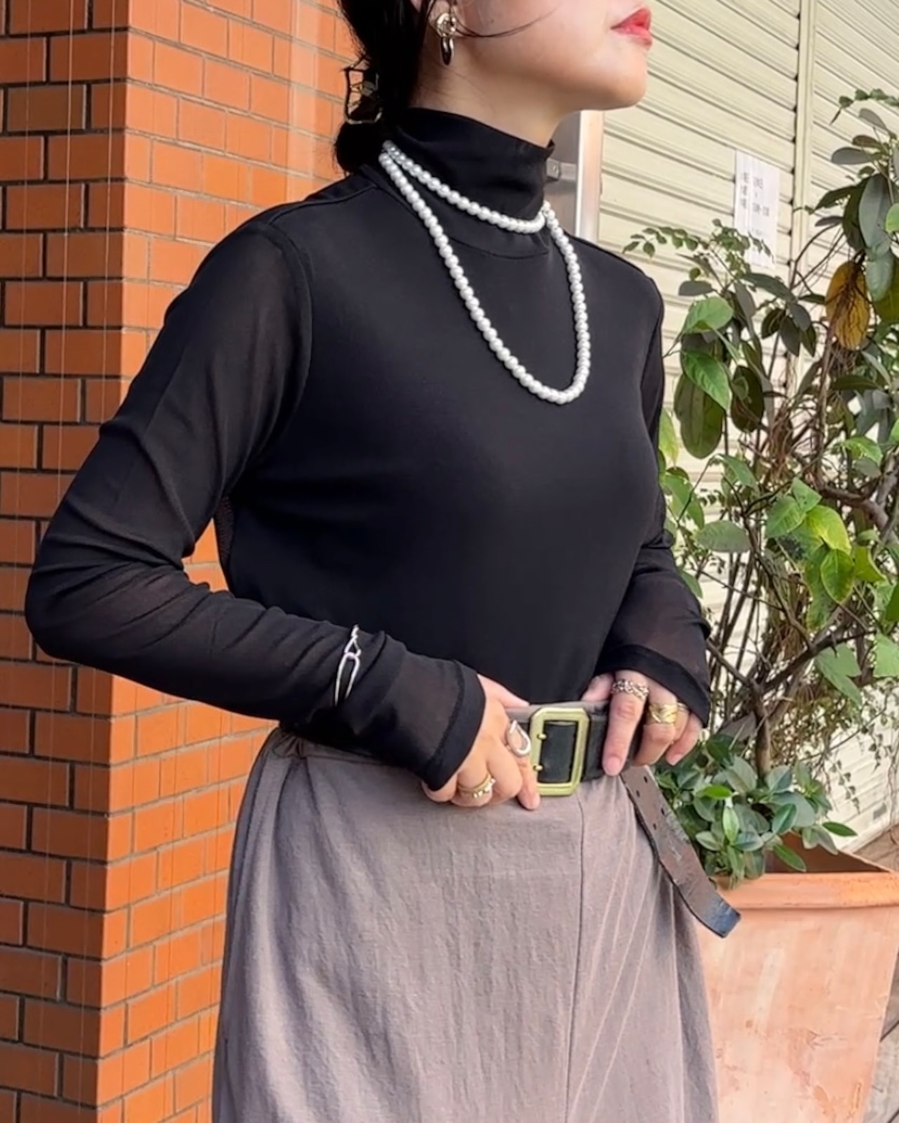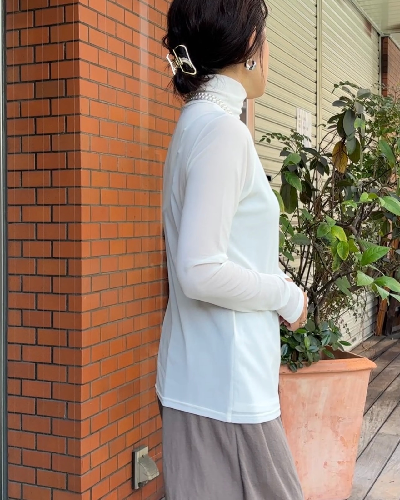 すっきりとしたフィット感で、1枚でもインナー使いでも万能な毎シーズン大人気のシアーハイネックが入荷‼︎