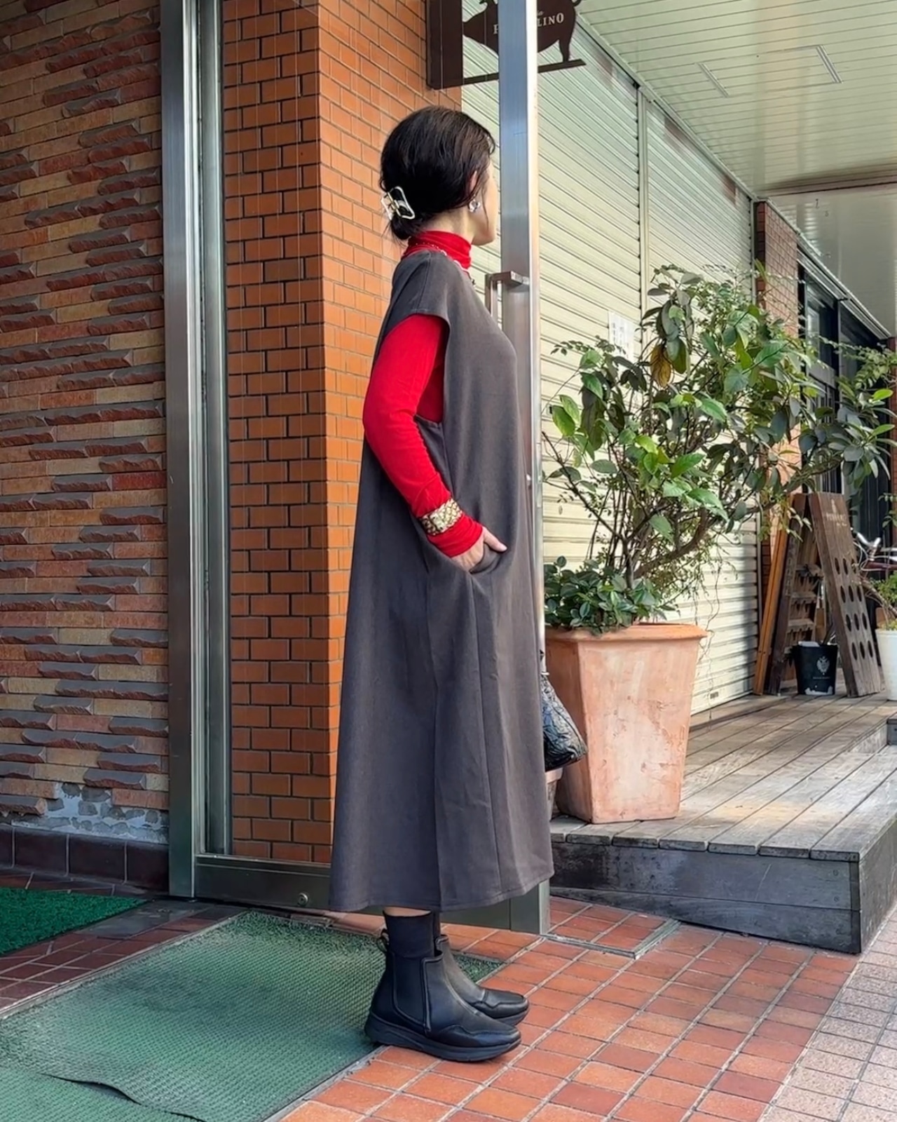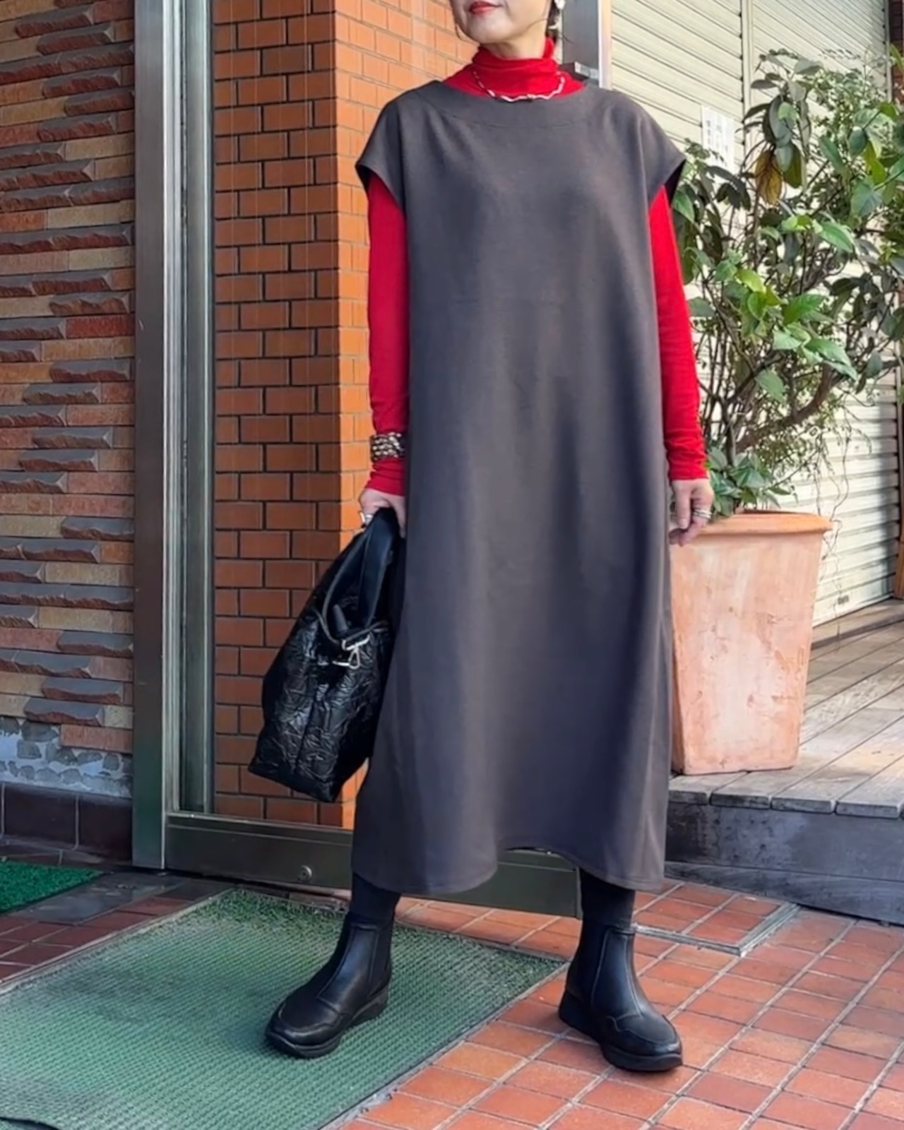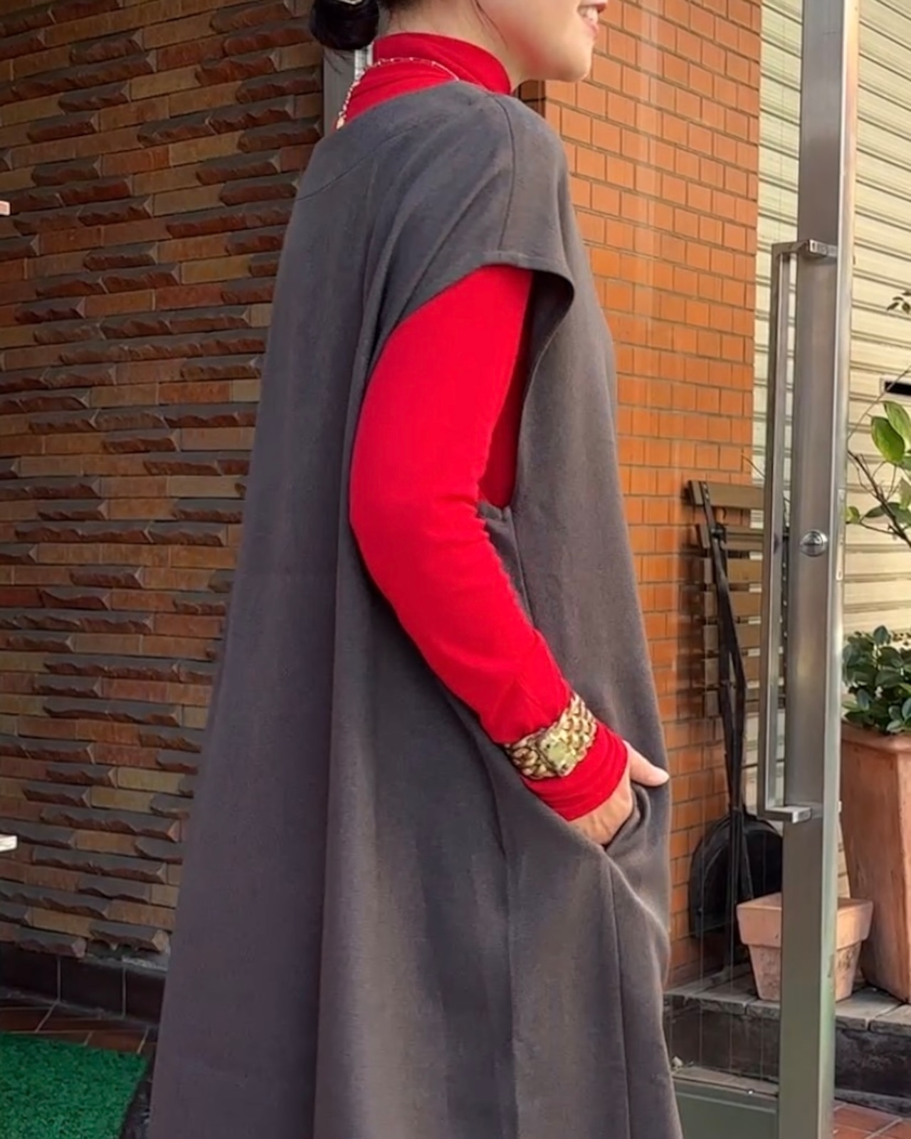 1枚でも様になり、アームホールも広めなのでデザインのある袖も素敵に重ね着できます。