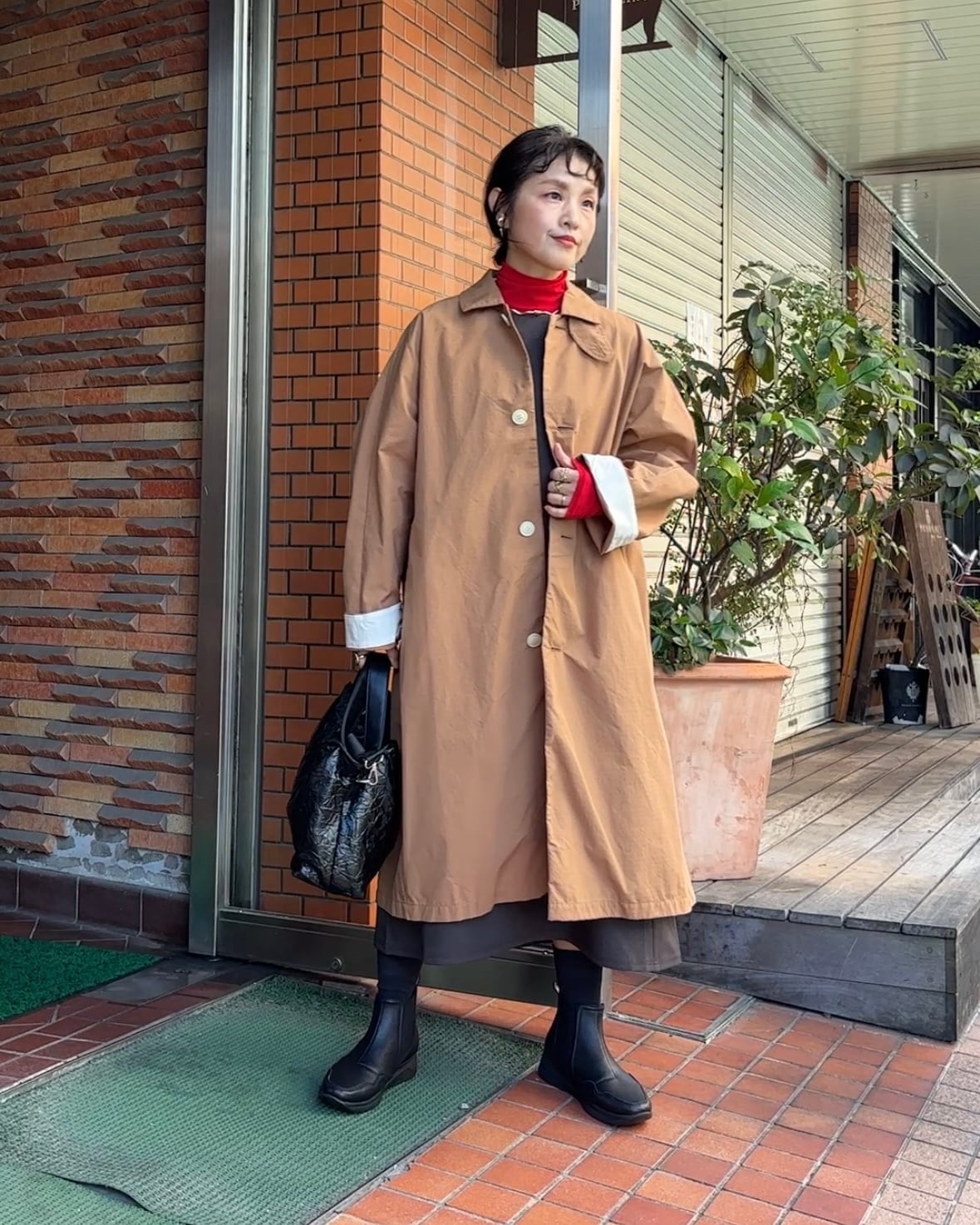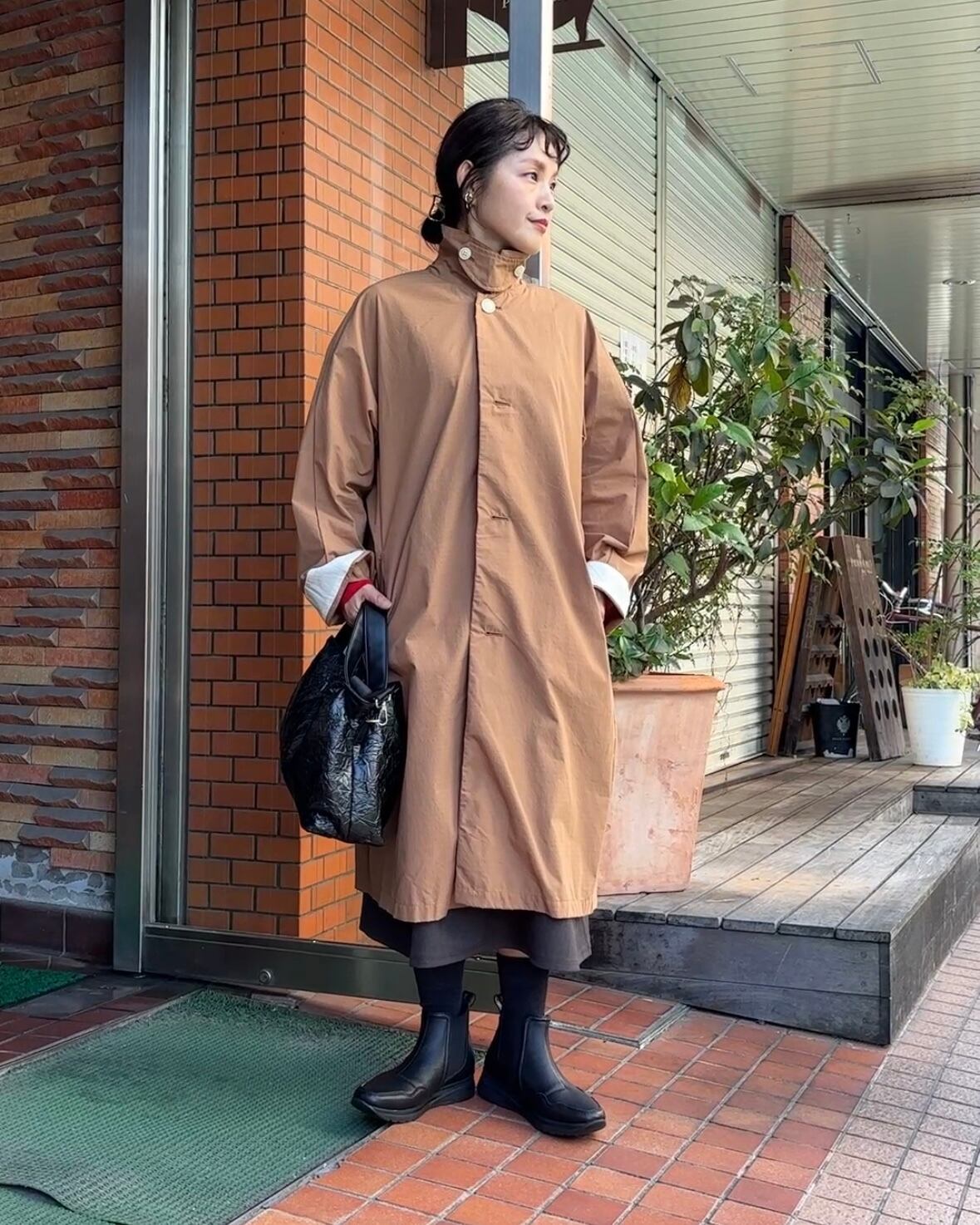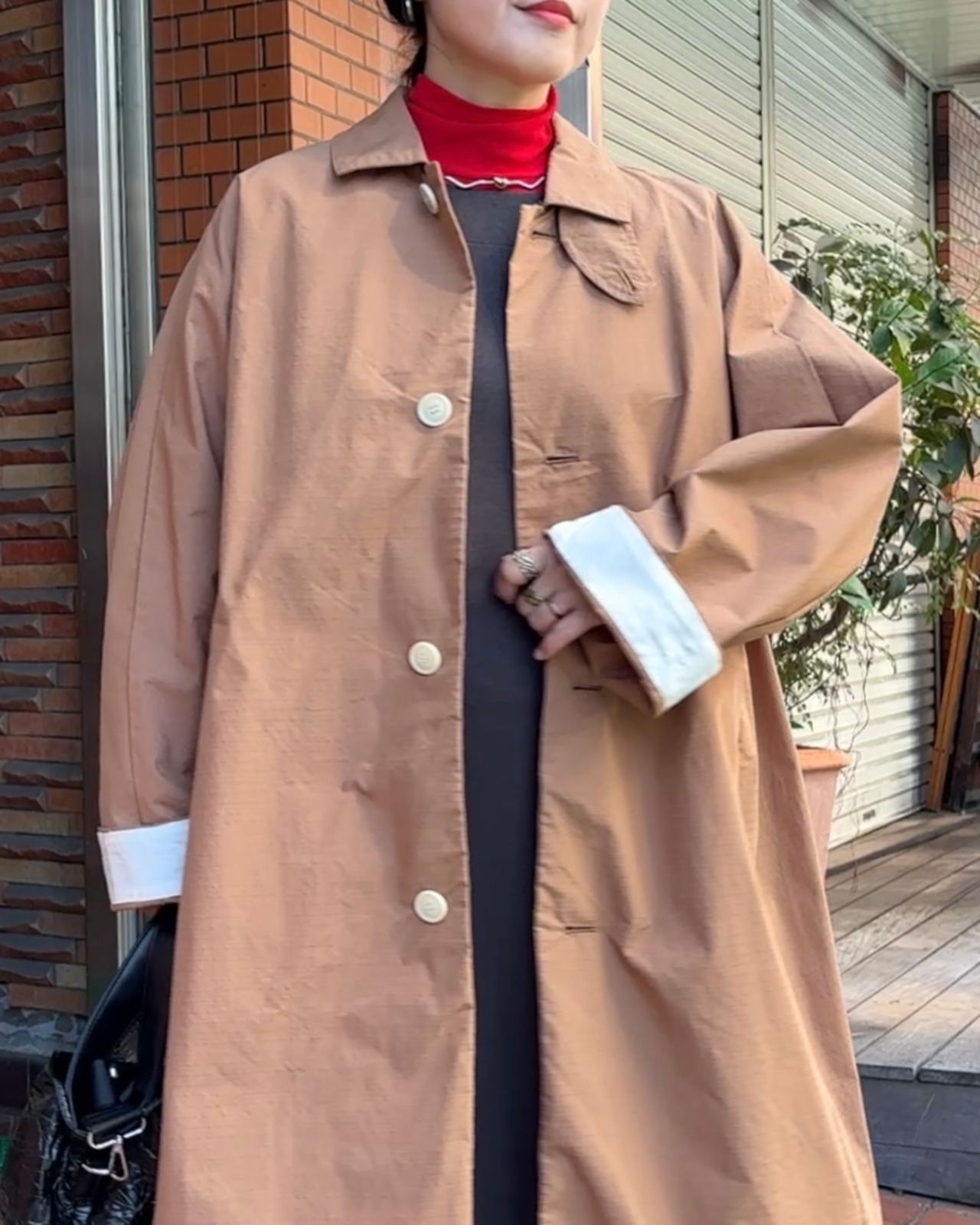 中間期を繋ぐベーシックに使えるステンカラーコート。