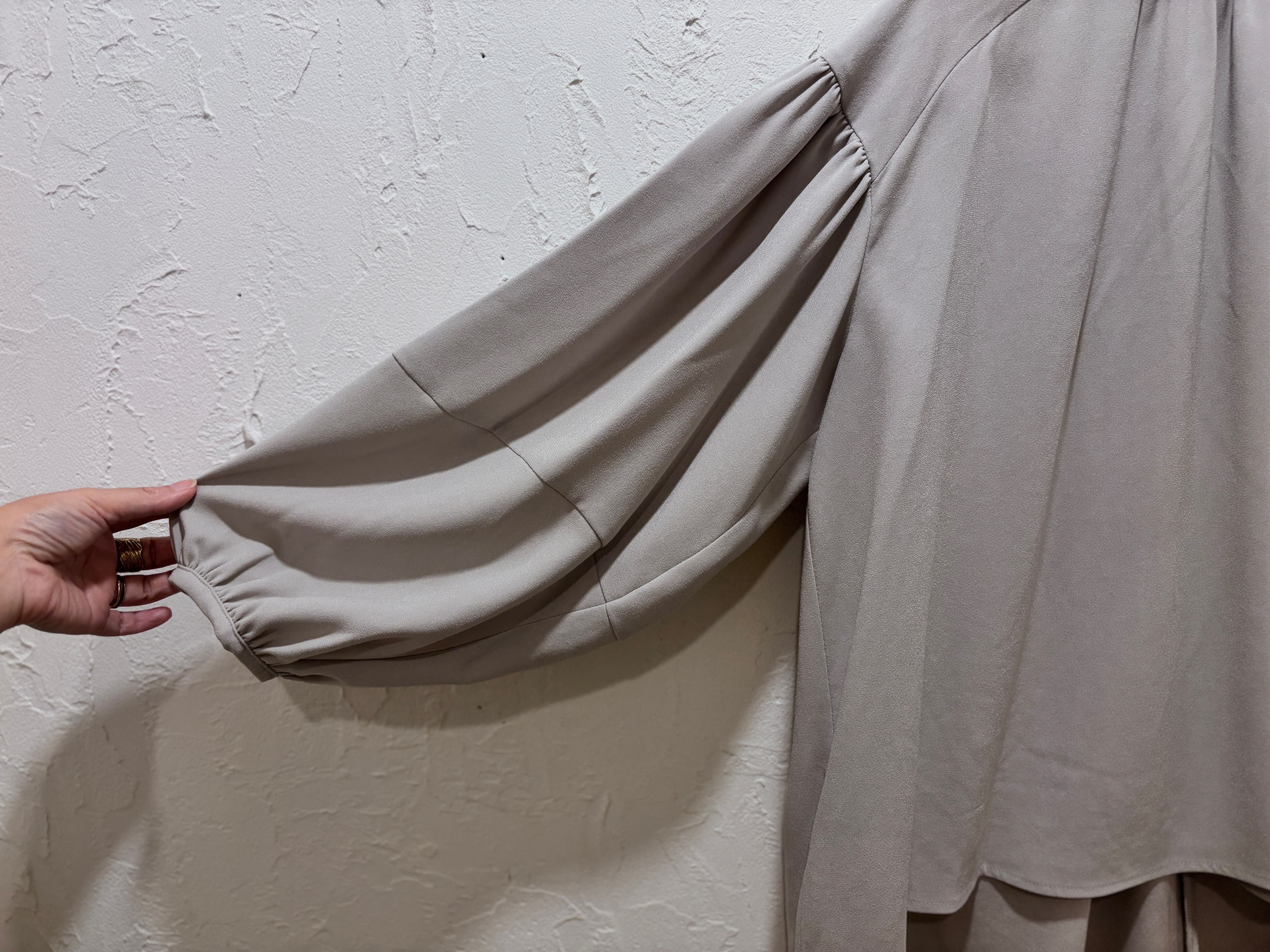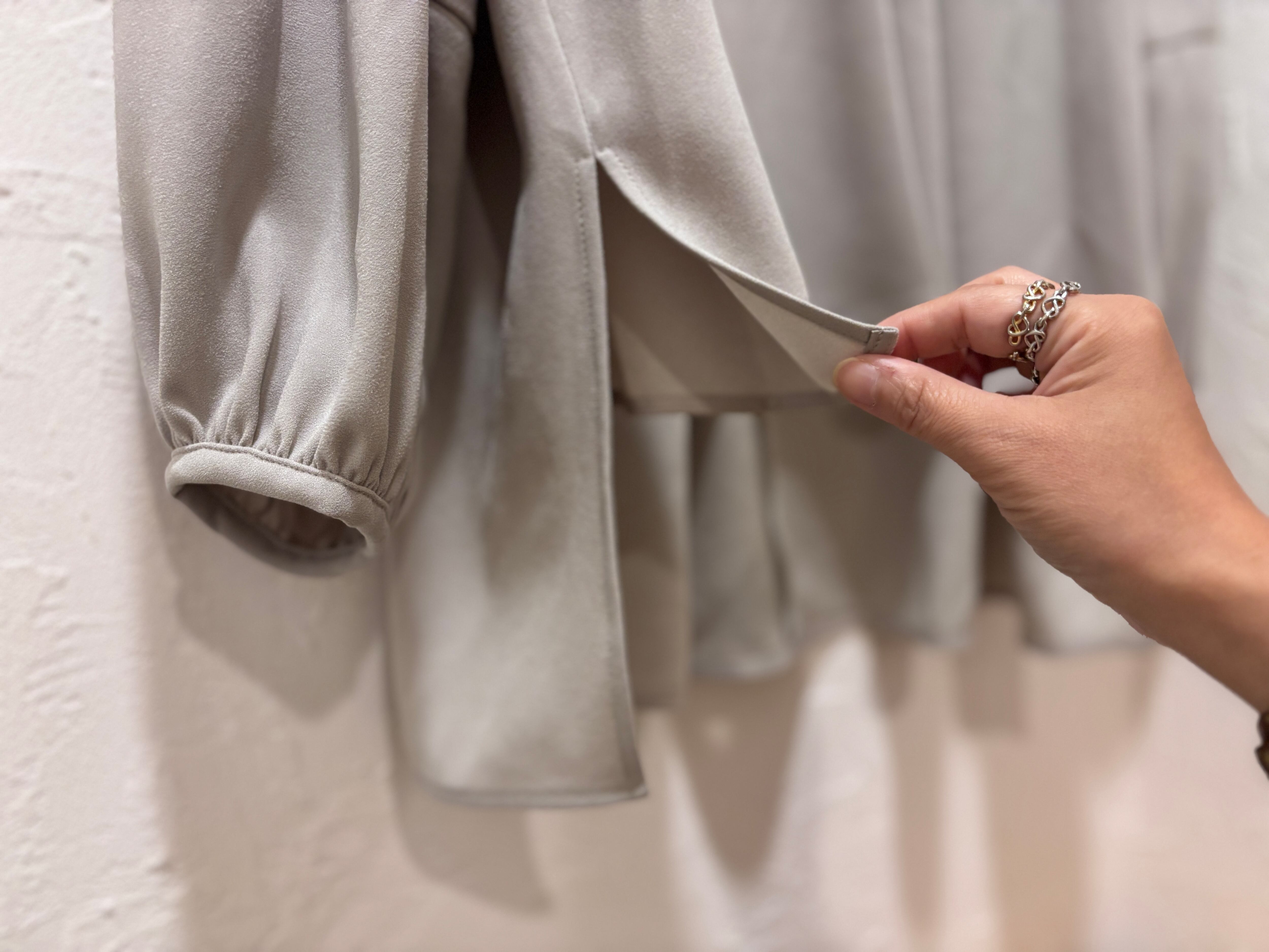 首まわりと袖口、背中のギャザーが立体感を生み、1枚で着ても華やかに見せてくれます。