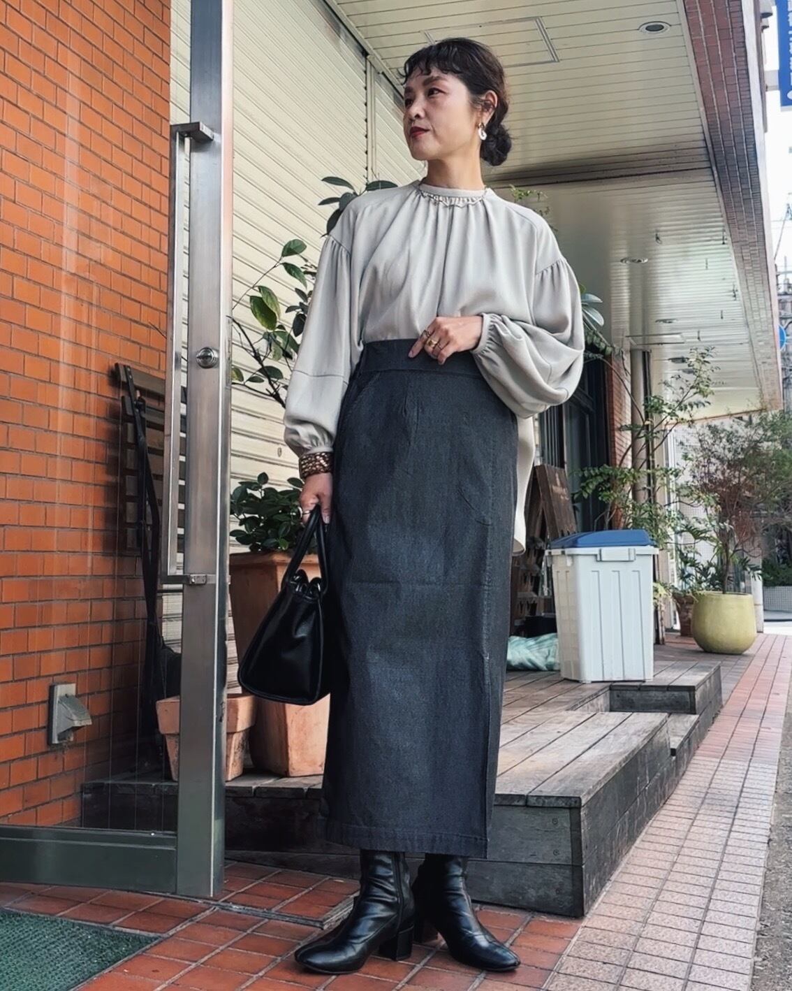 ゆったりな着心地ですが、上品な落ち感で華奢見えします。