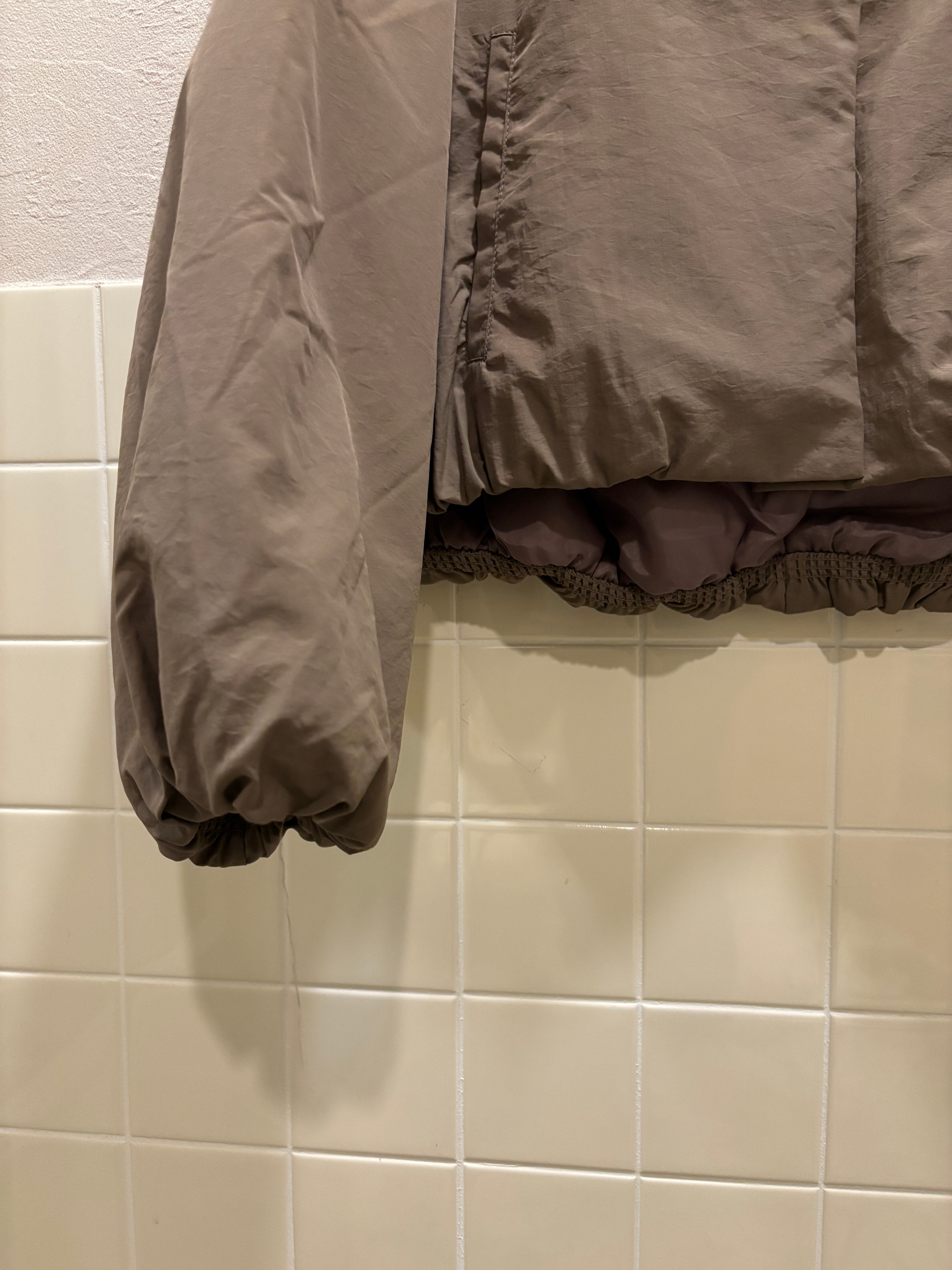 ふんわりとしたボリューム感と、軽やかな着心地が魅力の中綿ショートコート。