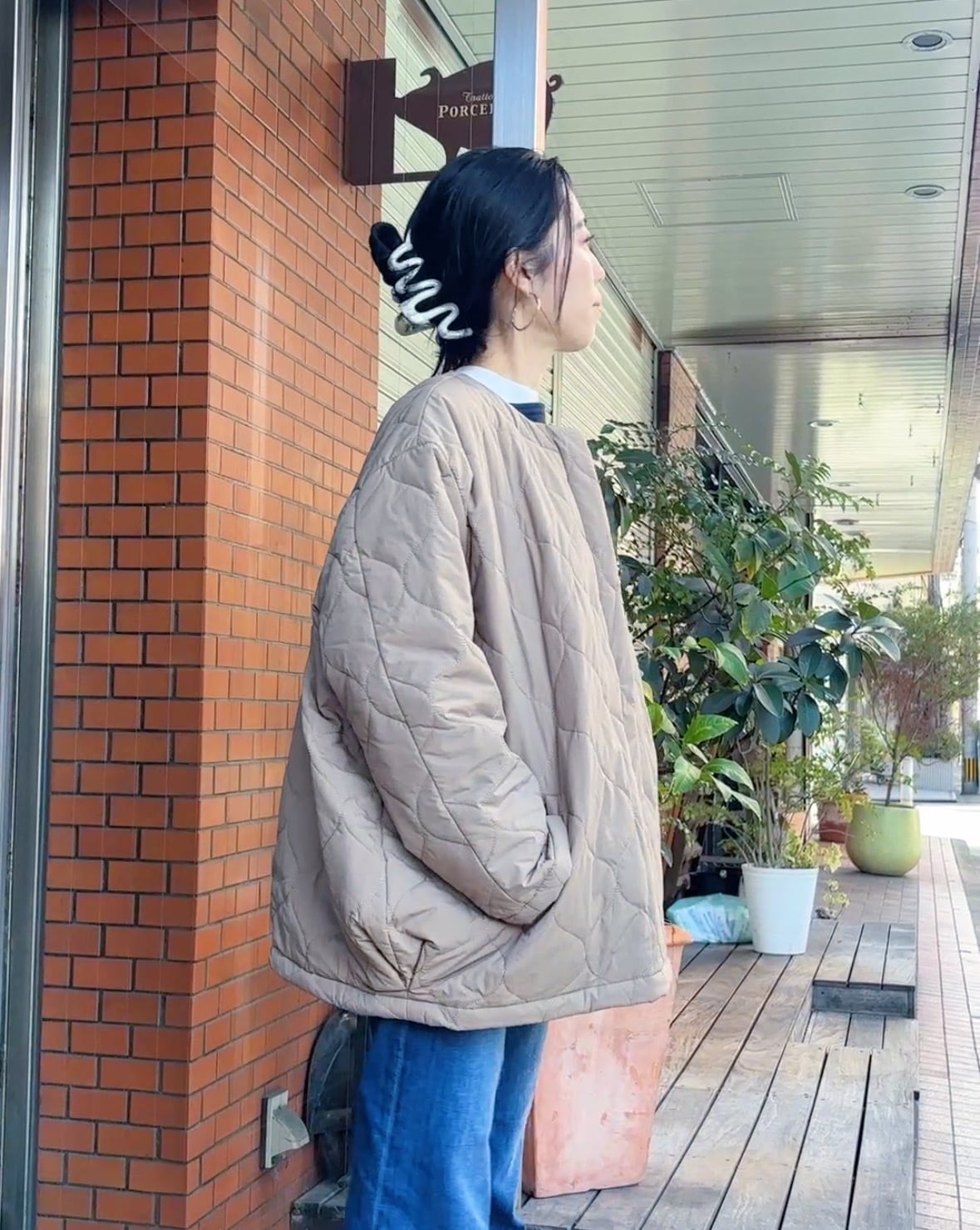 丸みのあるシルエットが魅力の、ワイドキルティングジャケット。