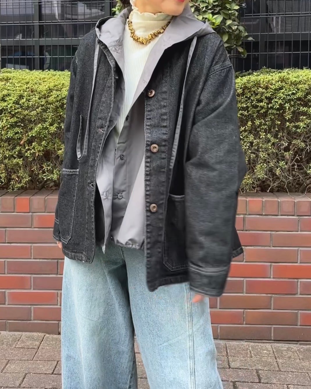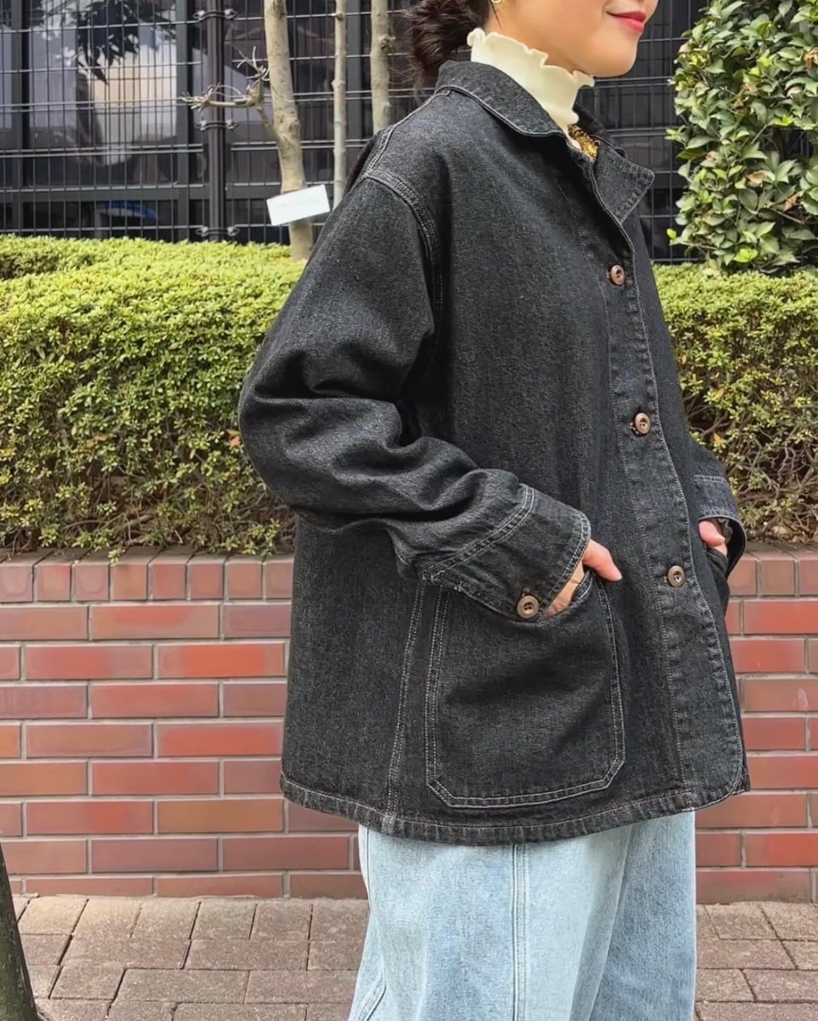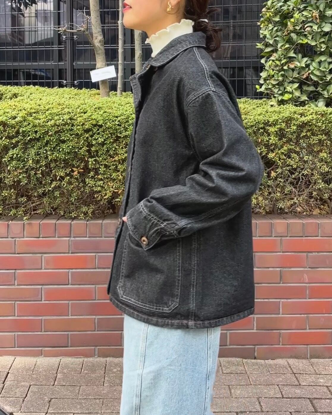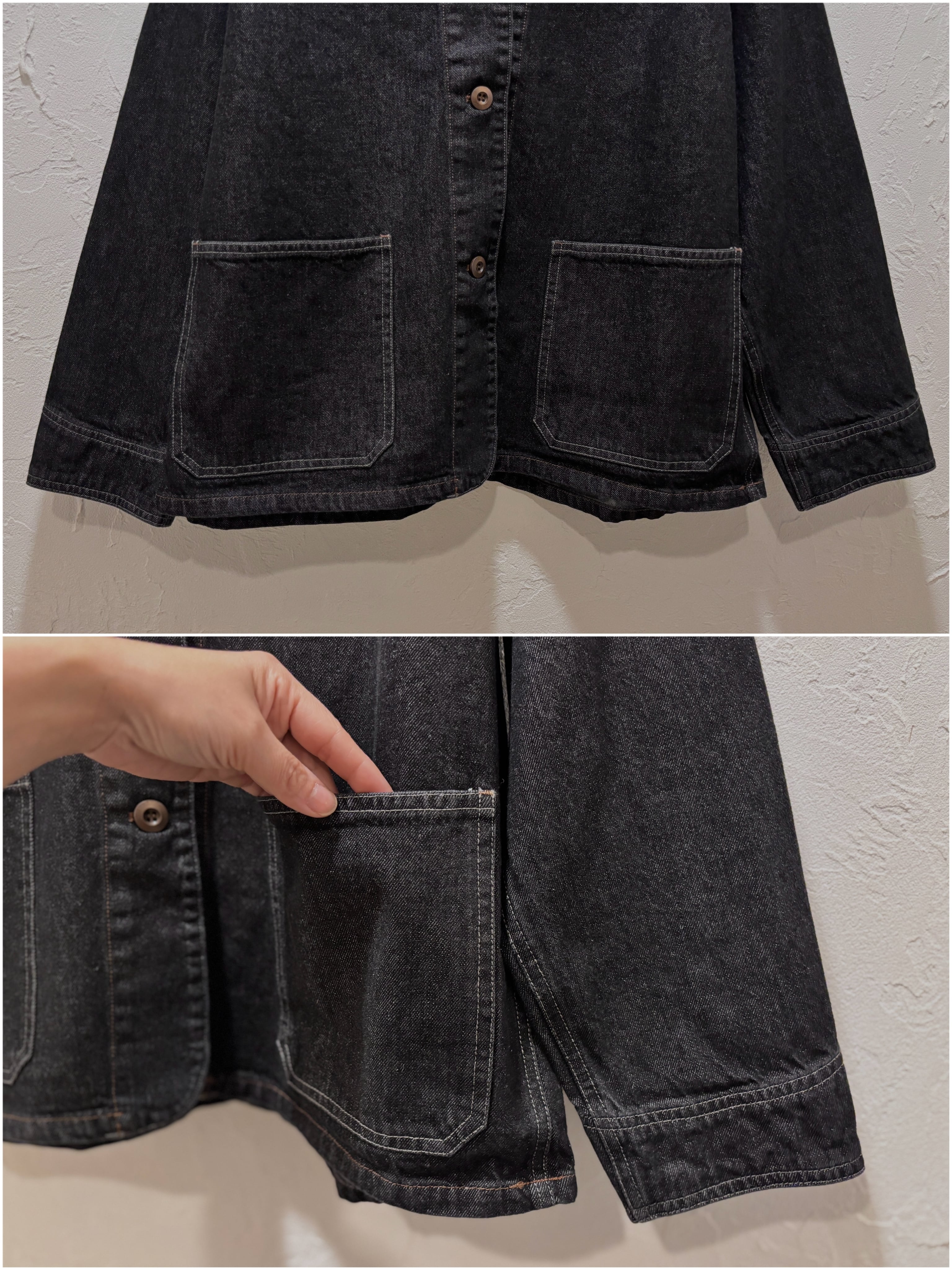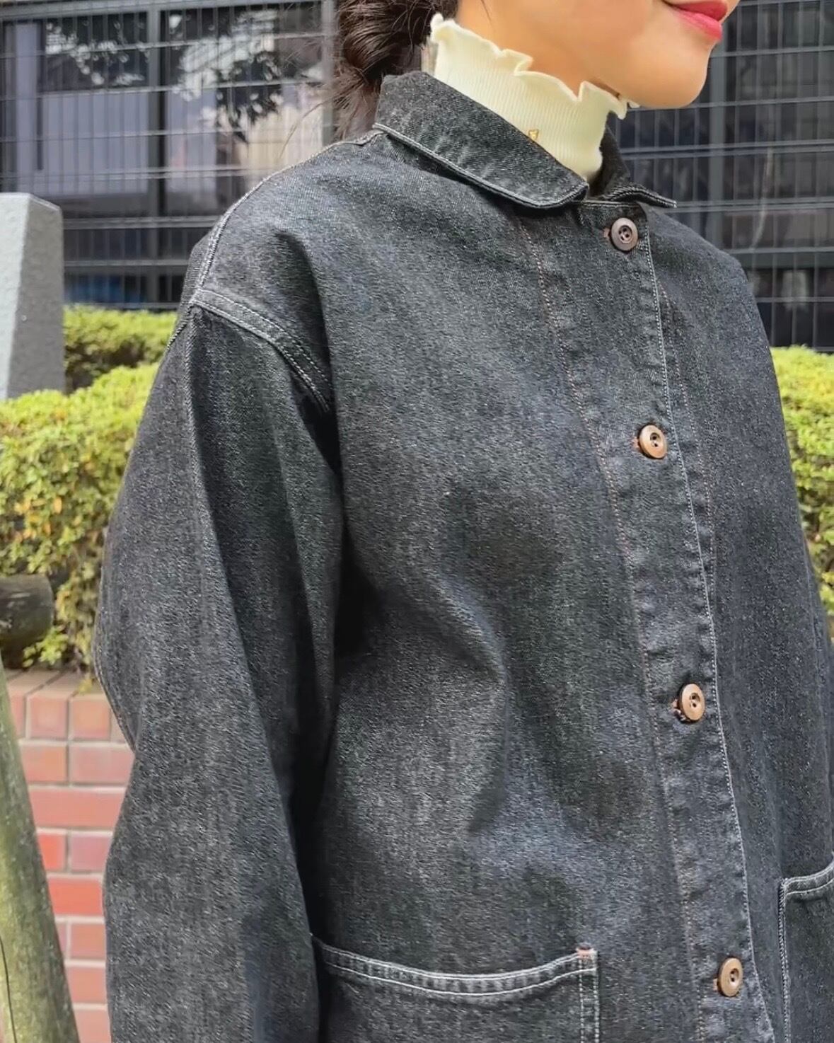 お色はブラックデニムで大人見えする1枚。