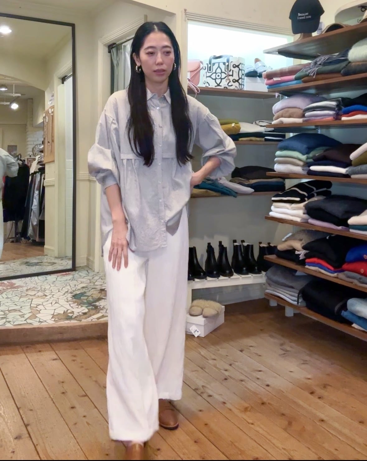 きれいめにもカジュアルにも振れる1枚。
