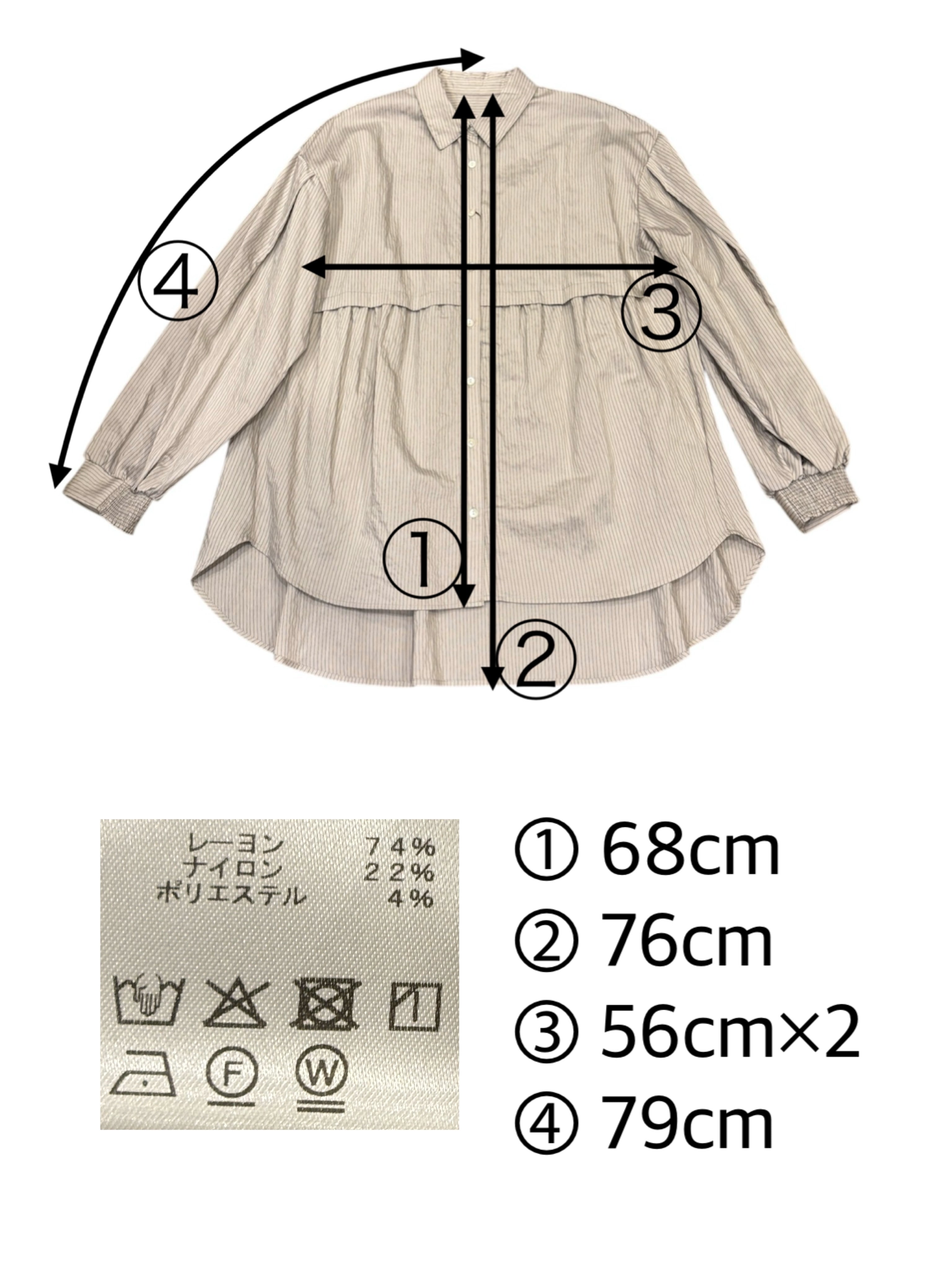 製造工程の関係上、各採寸箇所実寸(平置き)より【約-2cm〜+2cm】程度は誤差の許容範囲とさせて頂いております。
