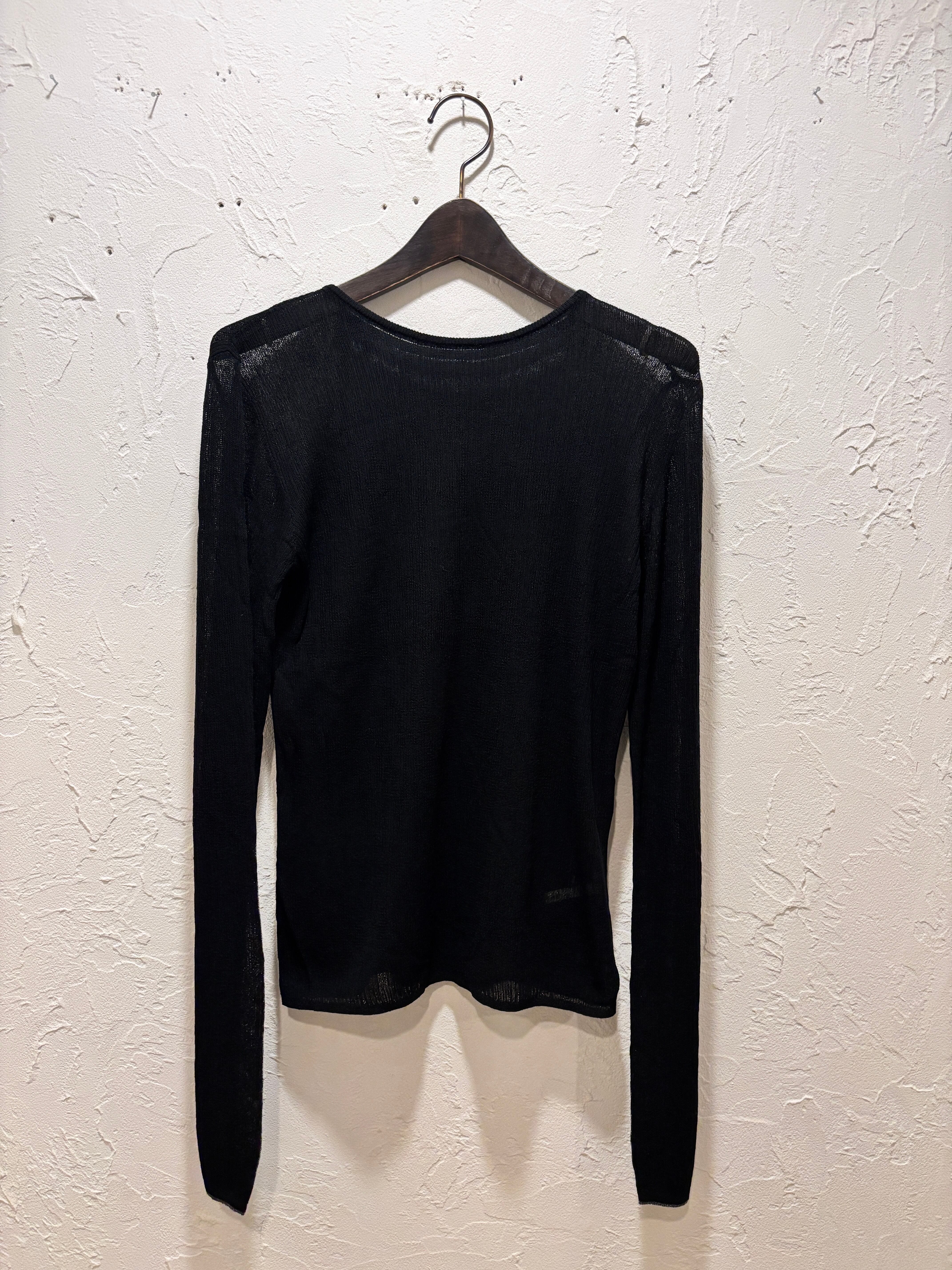 繊細なシアー素材に、縦ラインを強調するリブ編みを施したプルオーバー。