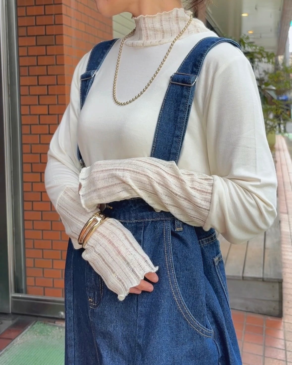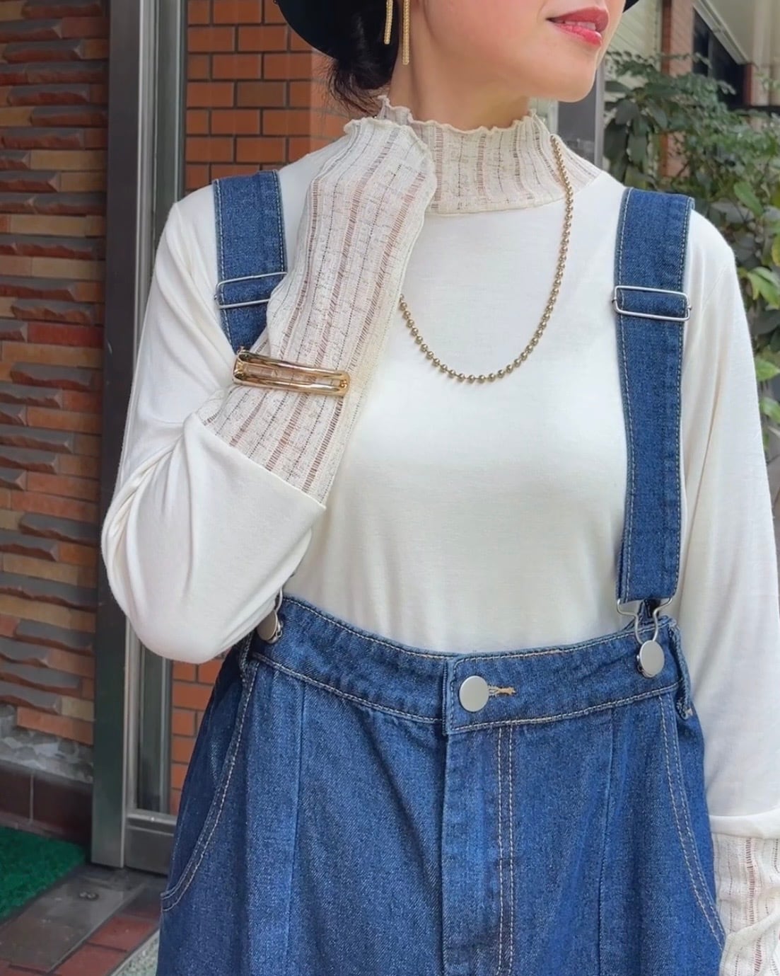 サロペットやジャンスカのインナーとしてはもちろん、一枚着でも女性らしく決まります。