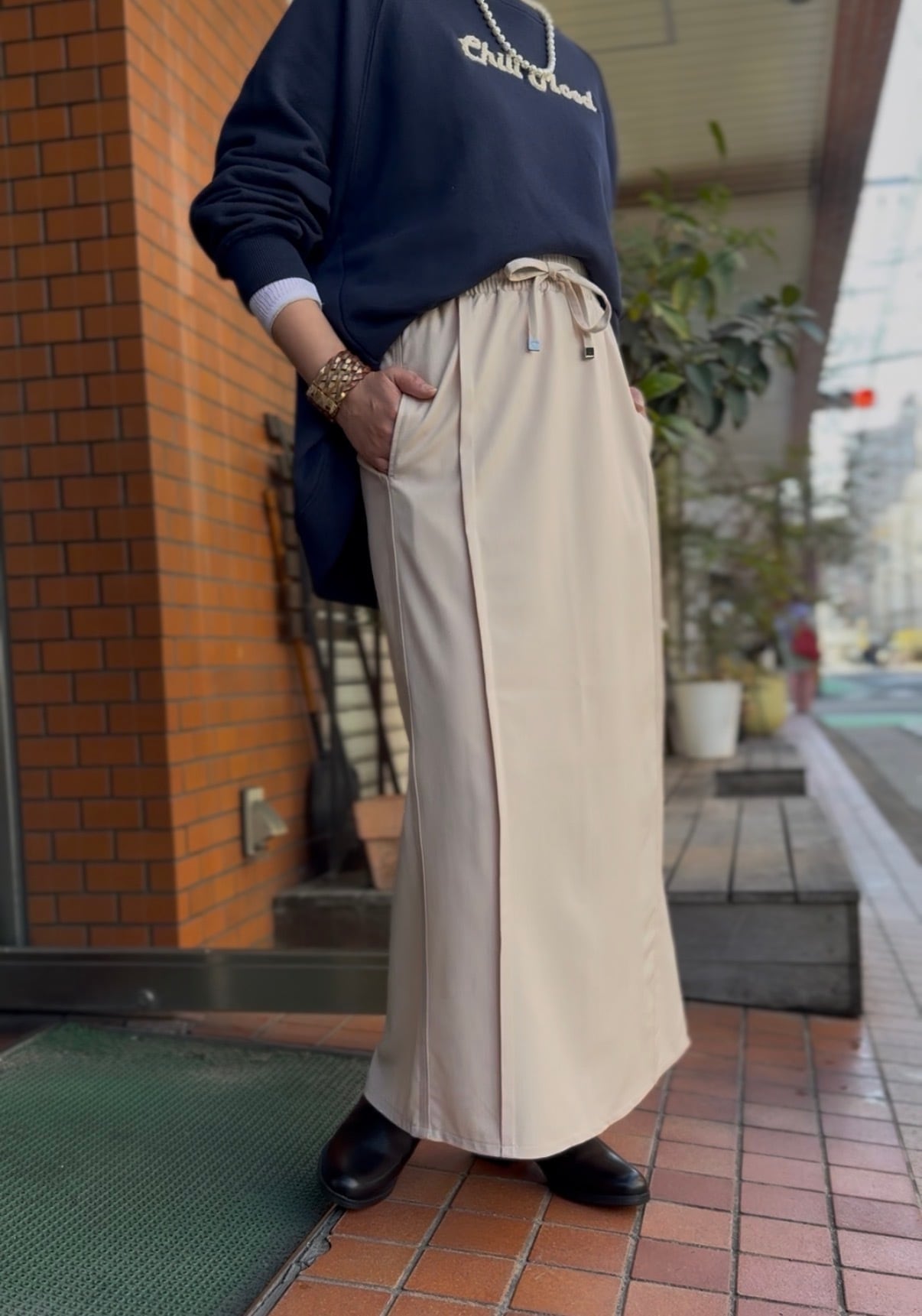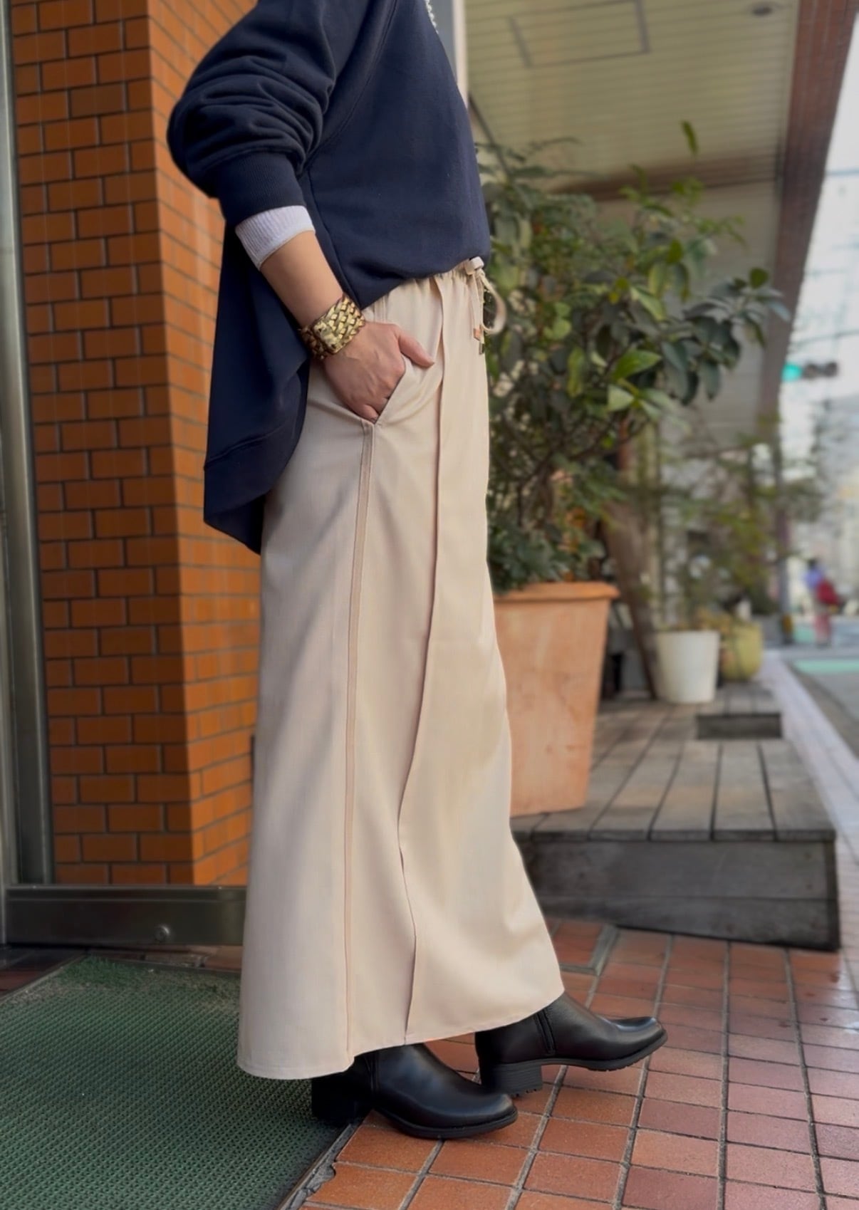 ウエストゴムでストレスフリーなのに、
