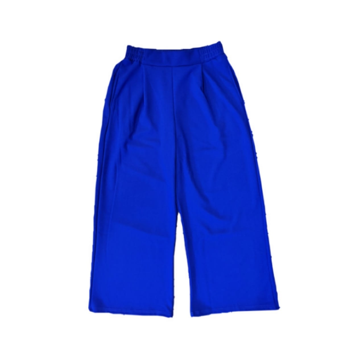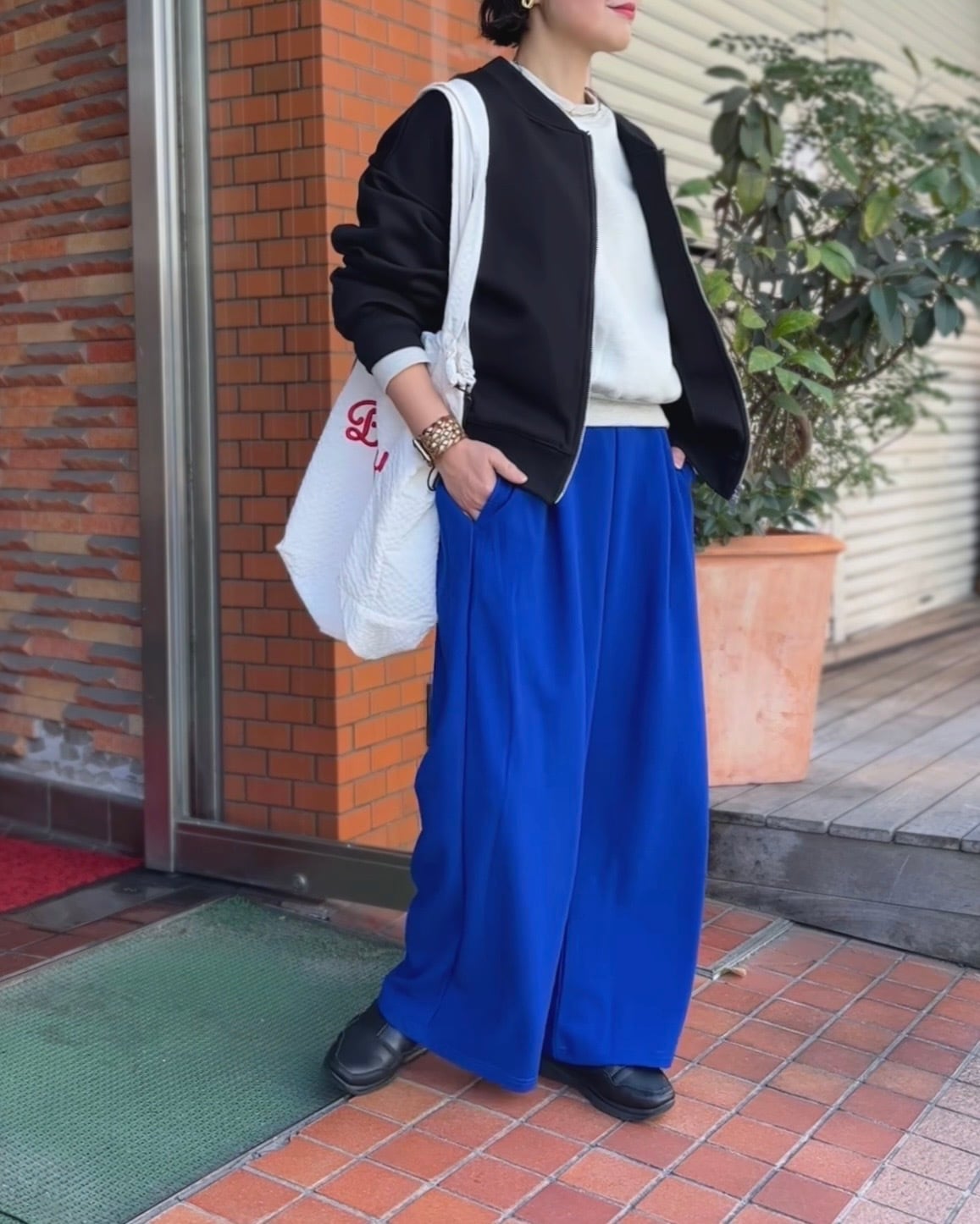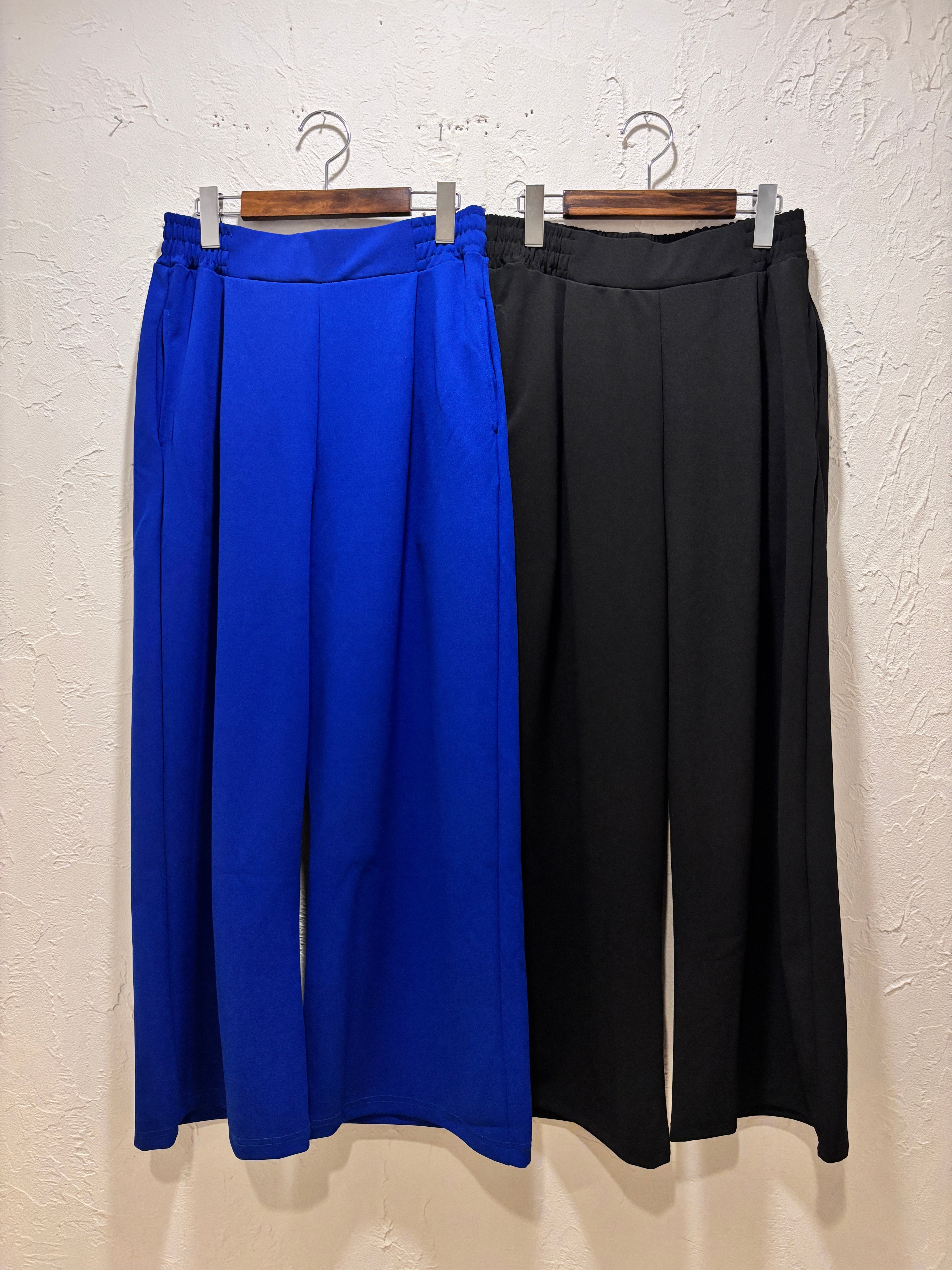 落ち感のある素材で、すとんときれいなシルエットが魅力のワイドパンツ。