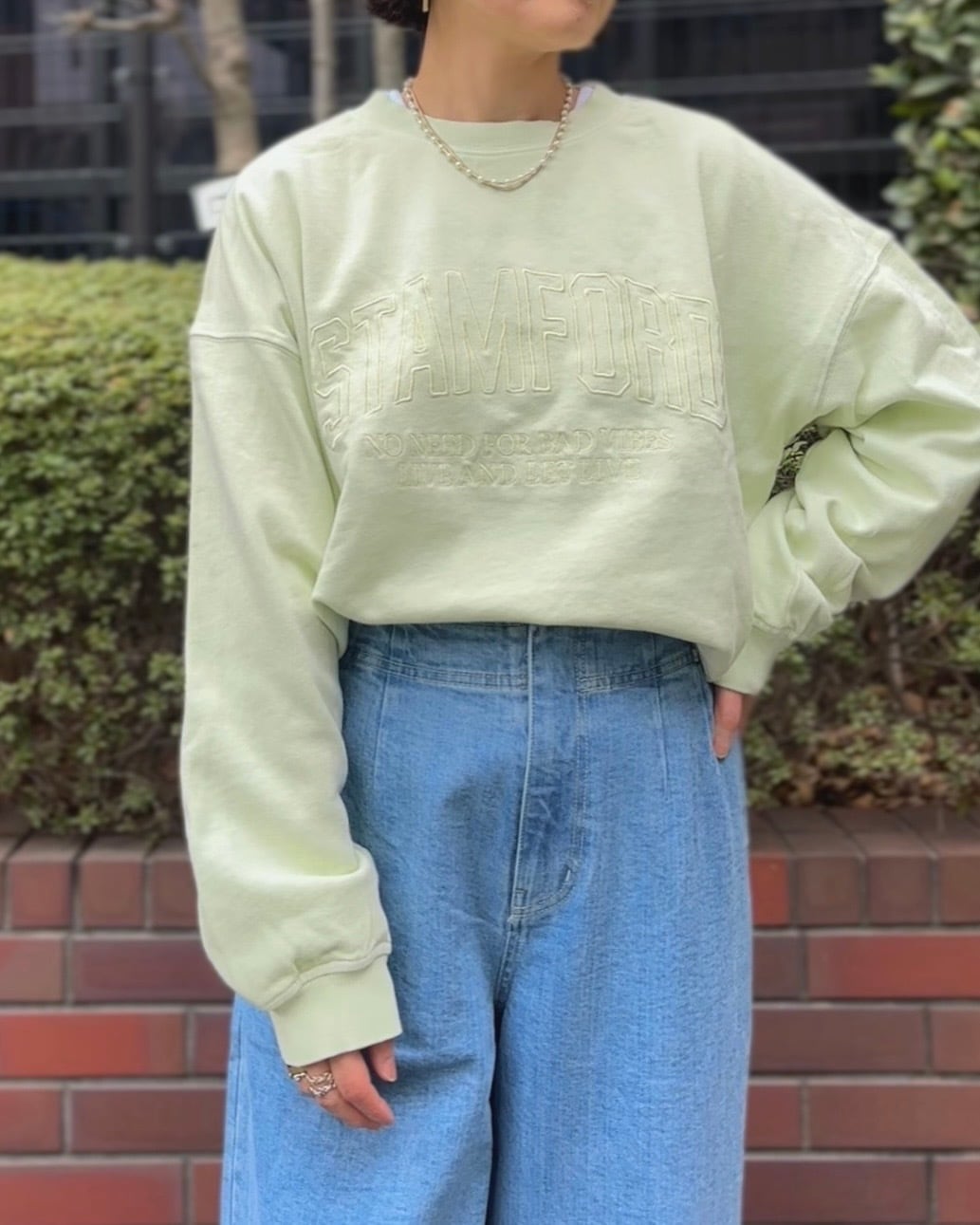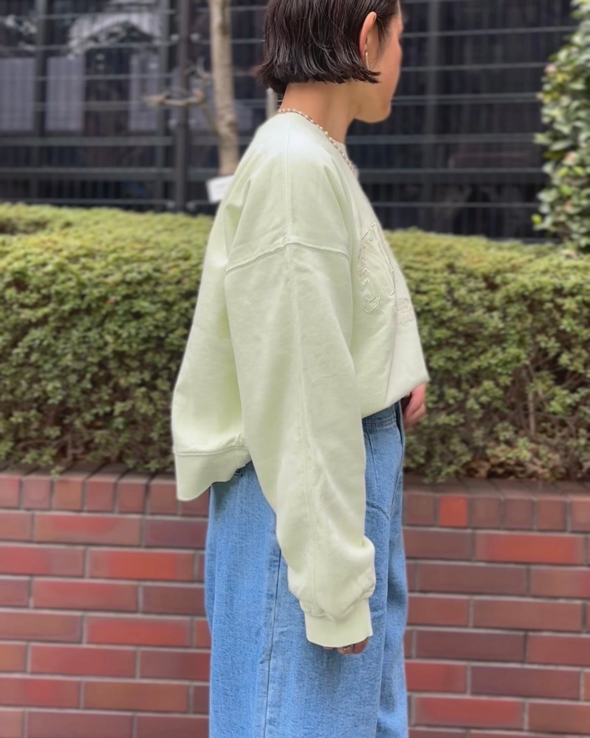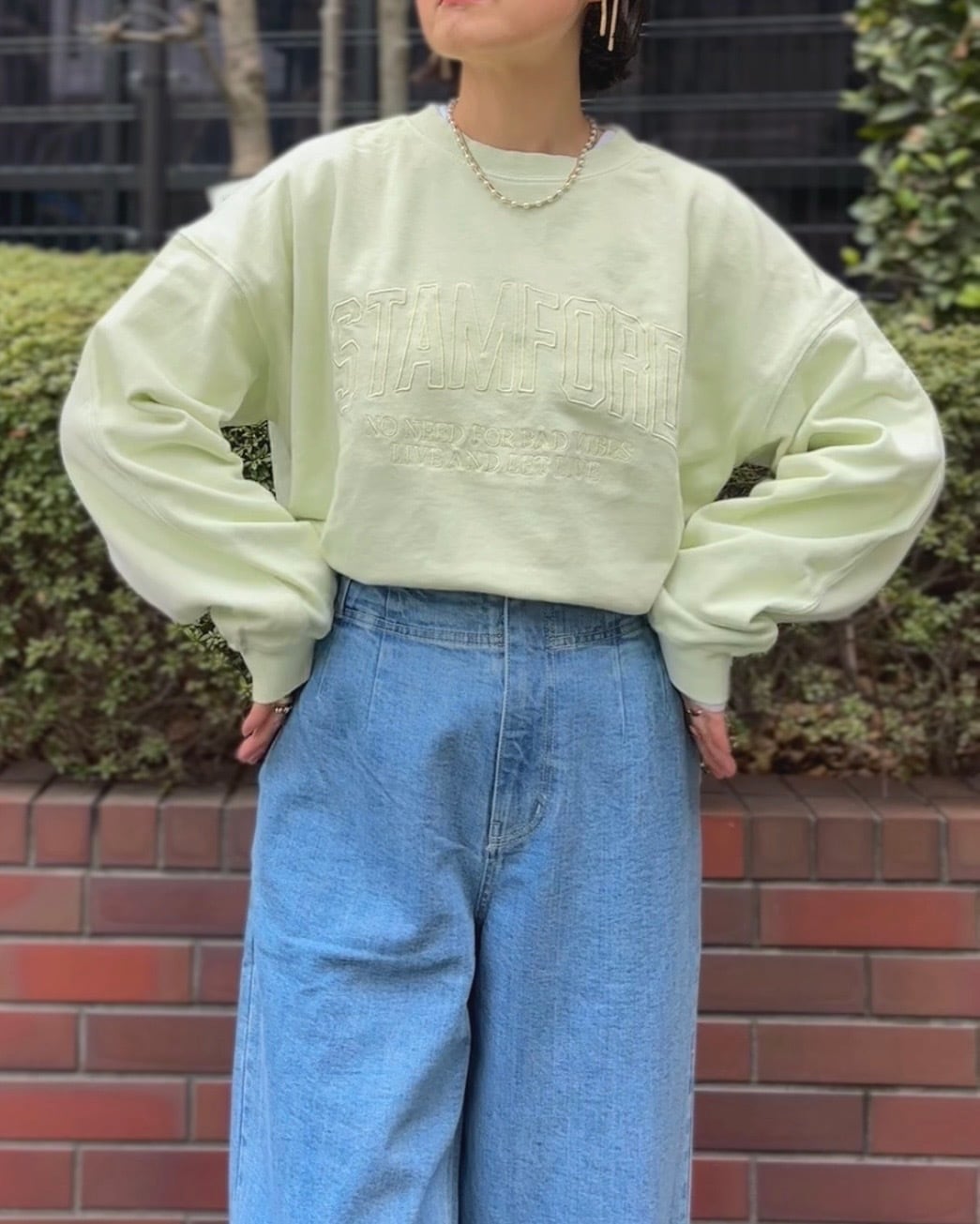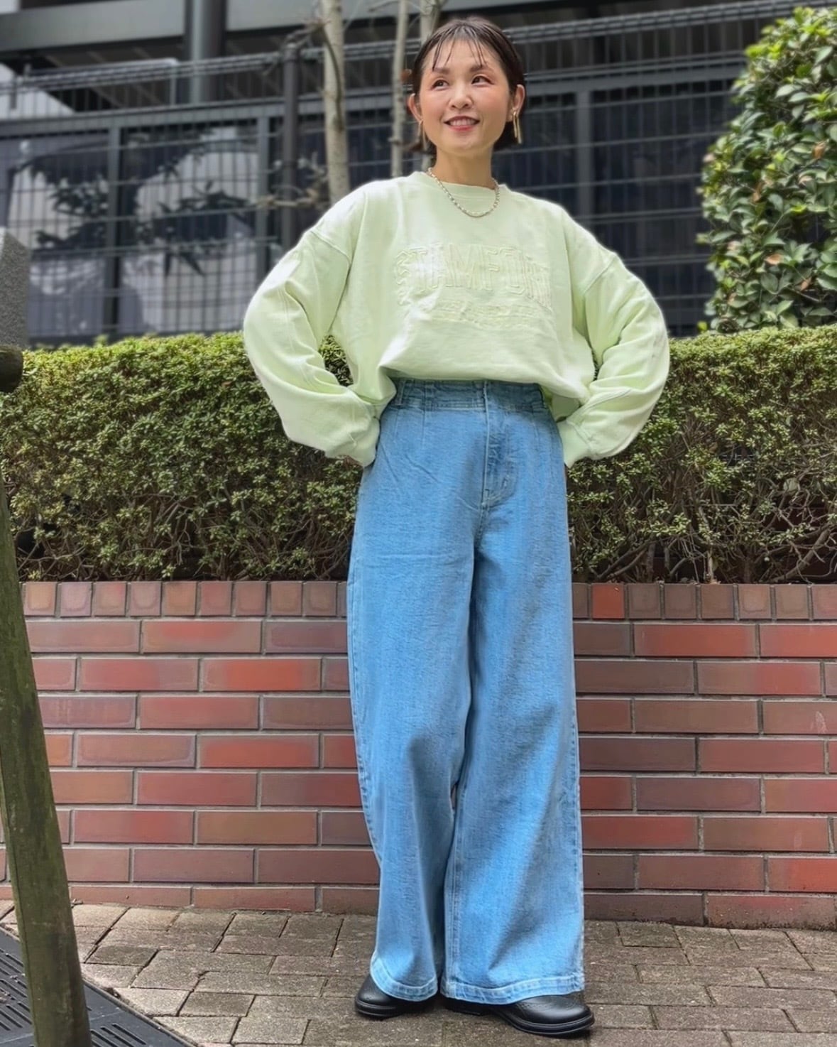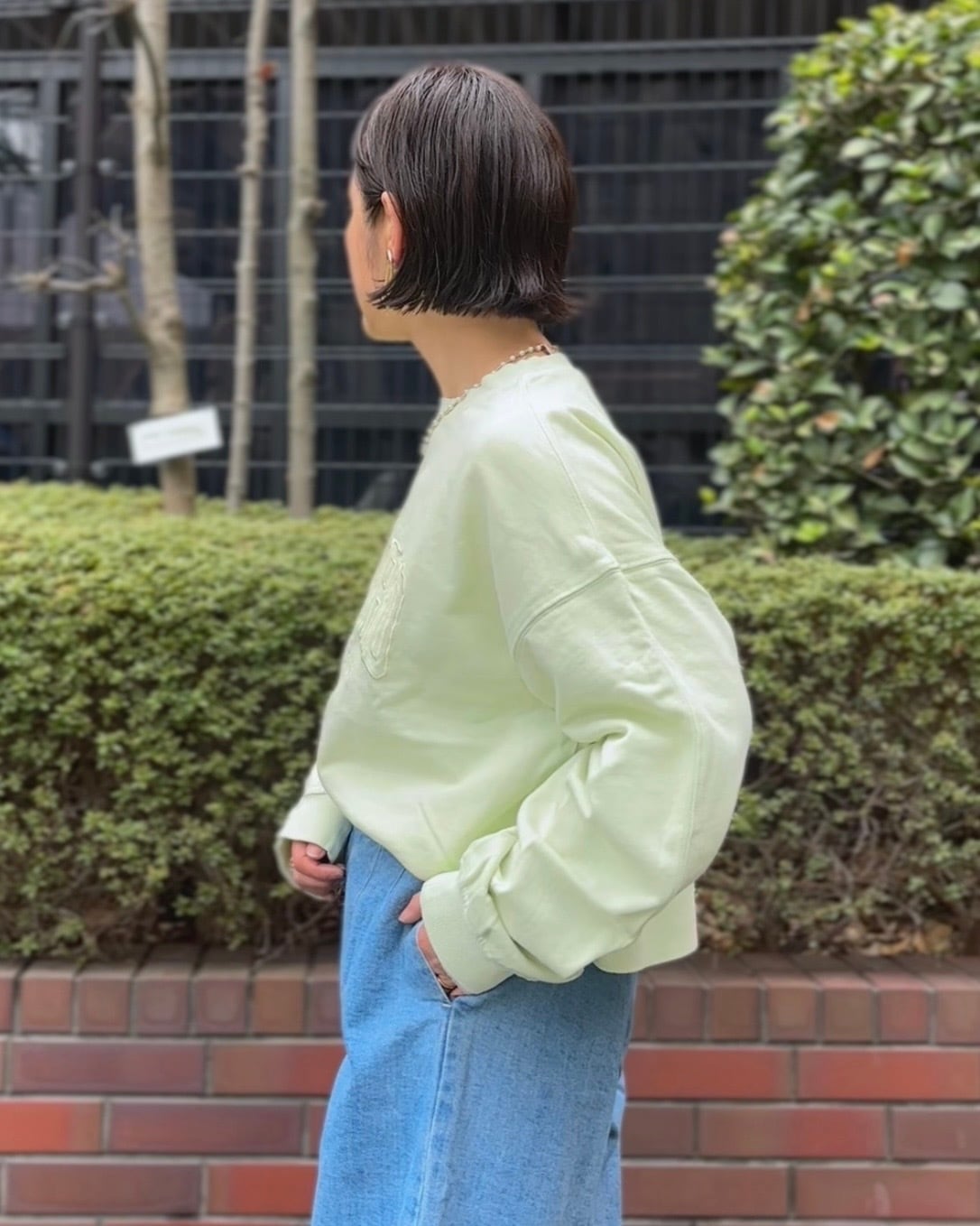 ゆったりとしたシルエットながら、やや短めの丈感でバランスが取りやすく、ワイドパンツやスカートとも好相性。