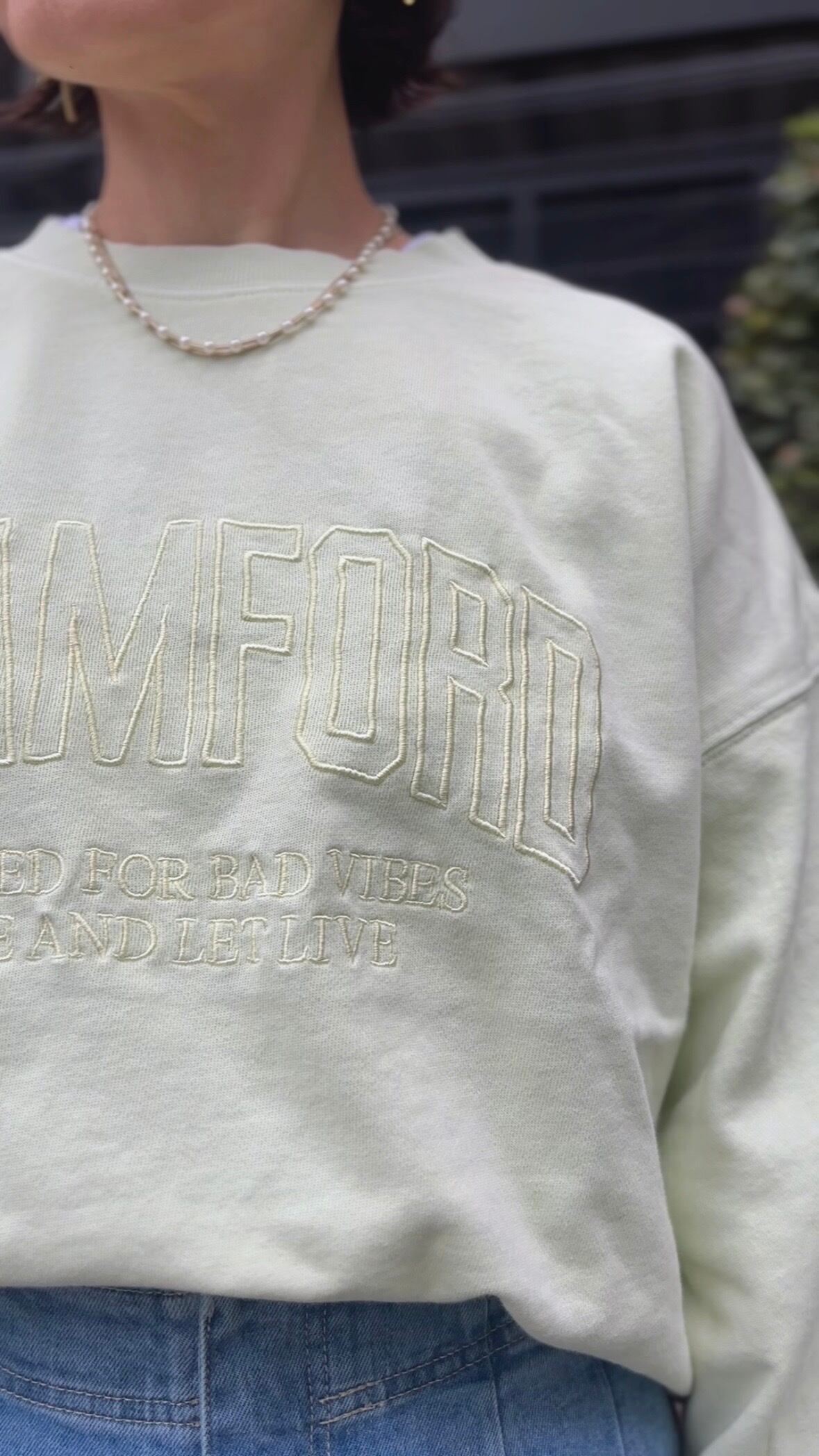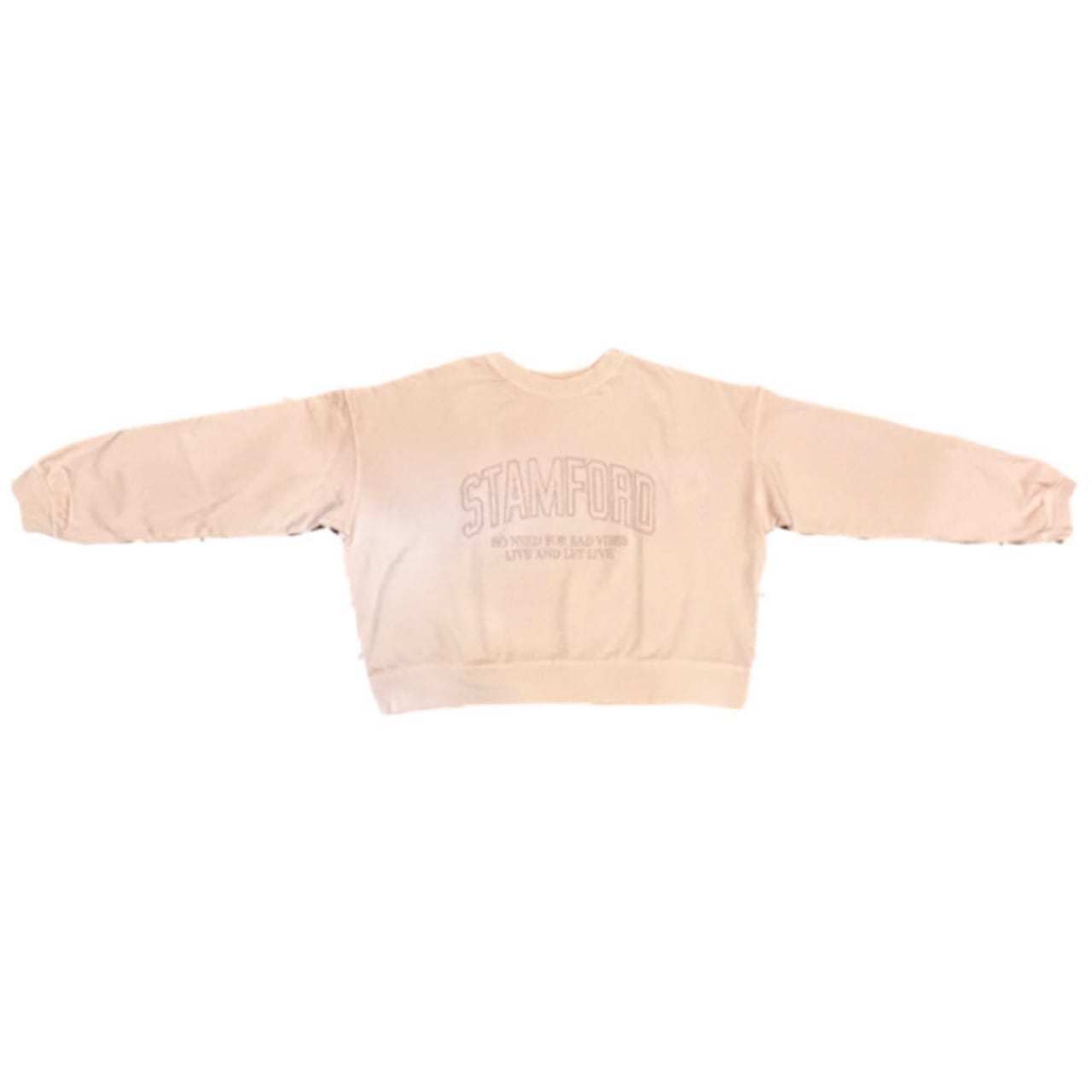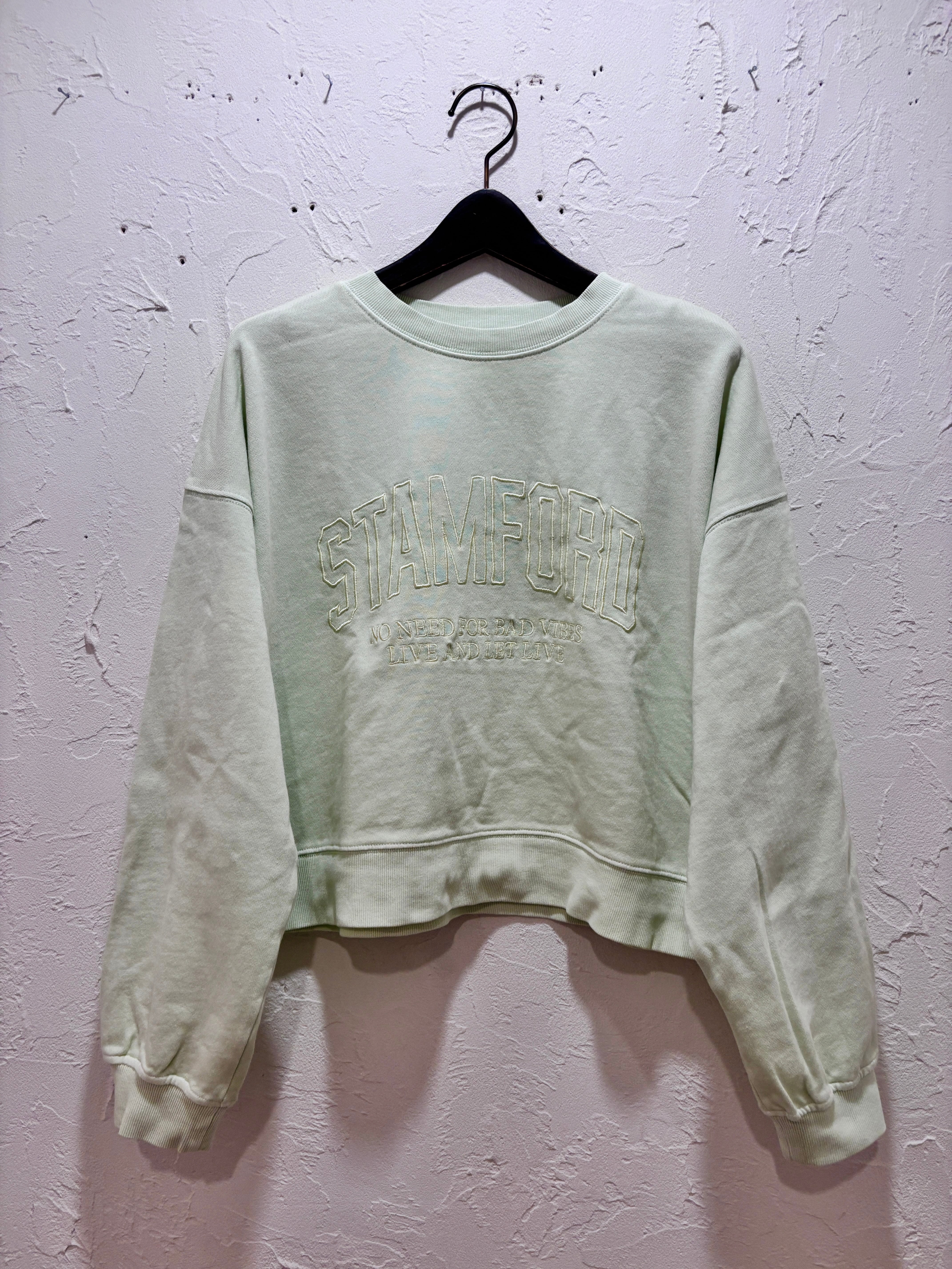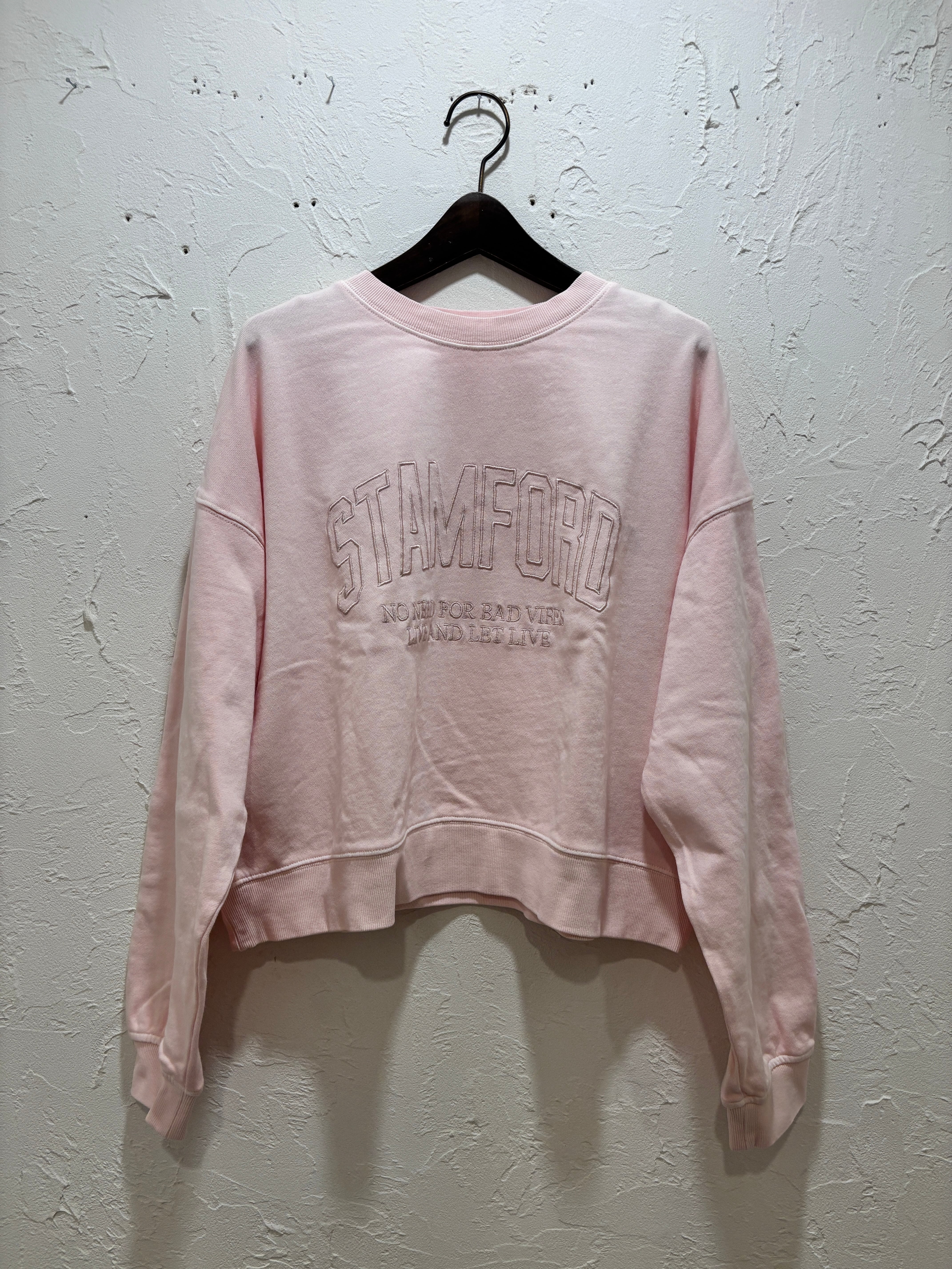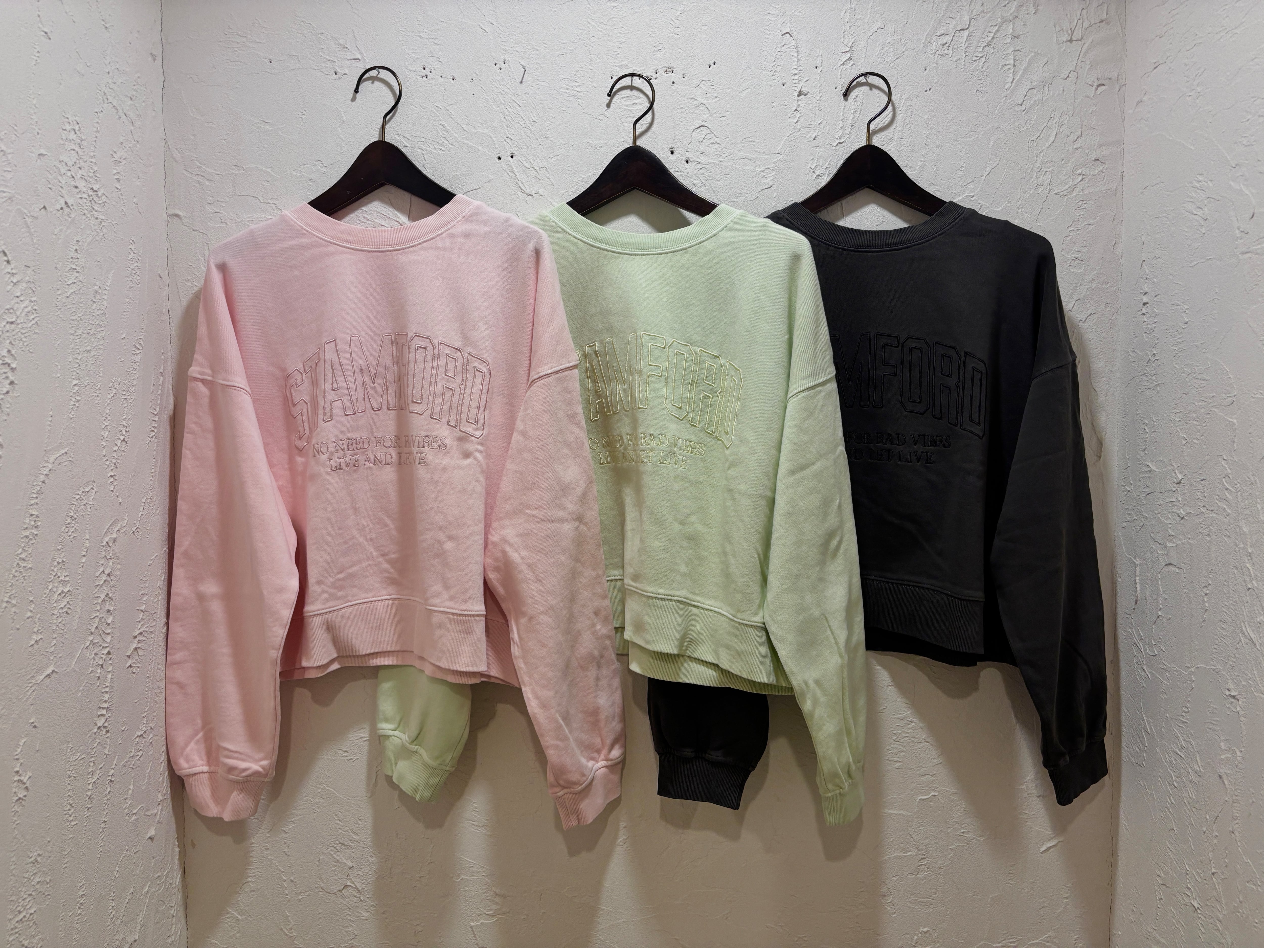 春らしいニュアンスカラーと、立体感のあるロゴ刺繍がポイントの大人カジュアルプルオーバー。