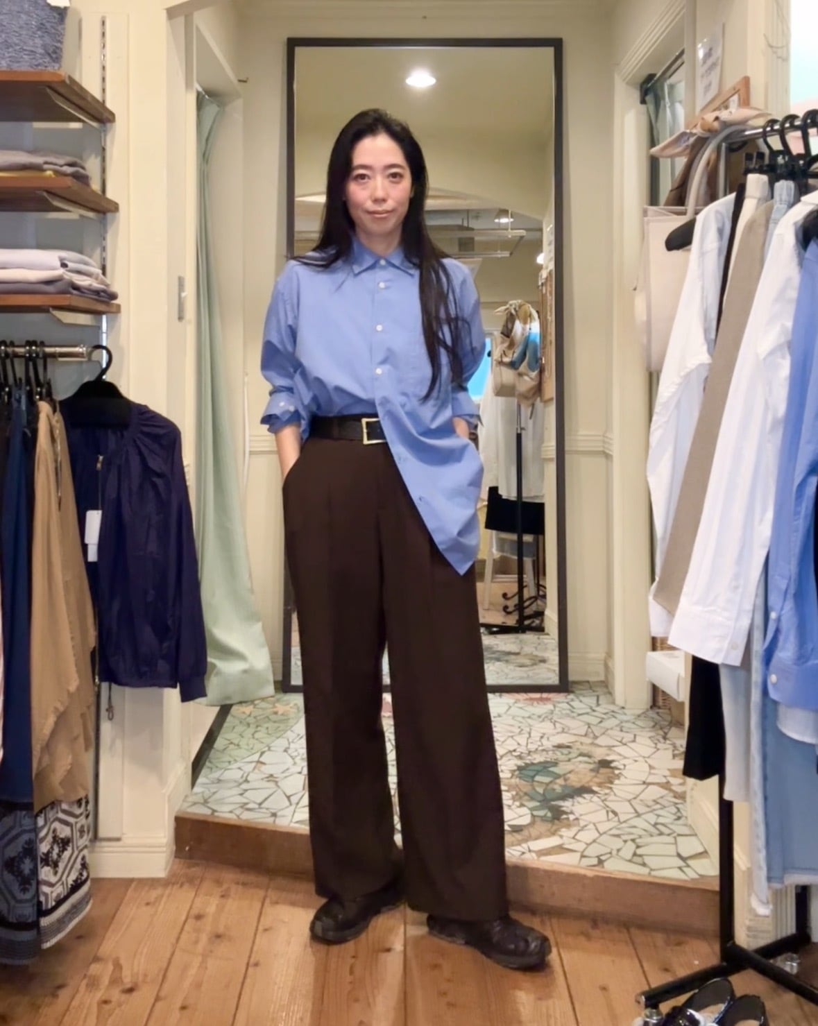 ほどよいハリ感のある素材と、リラックス感のあるシルエットで、「きちんと見え」と「抜け感」を両立できます。
