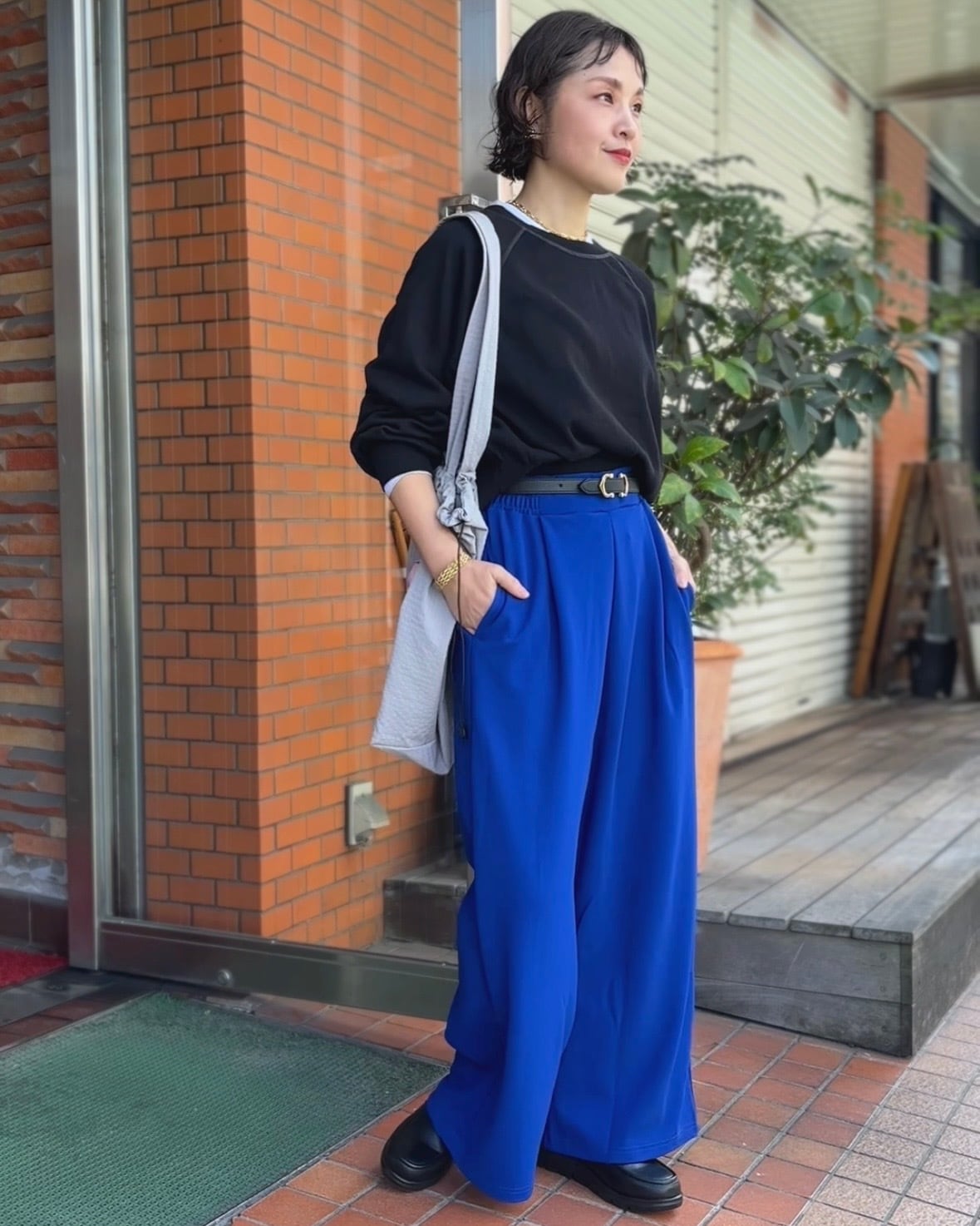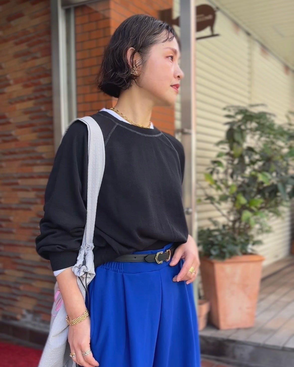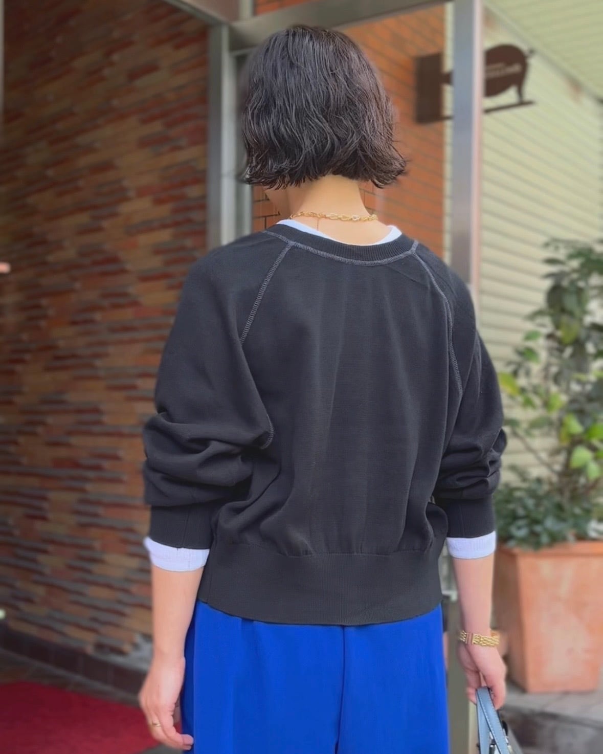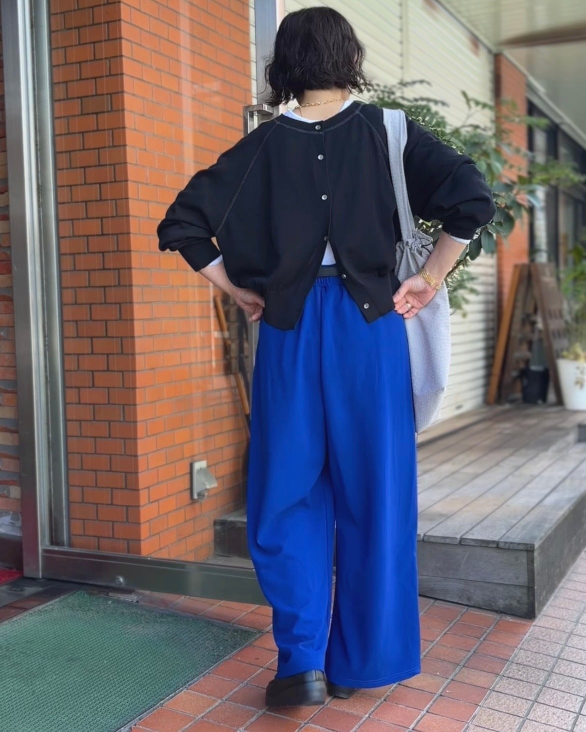 コンパクトな着丈と裾リブデザインがバランスを取りやすく、ワイドパンツやスカートとも好相性◎