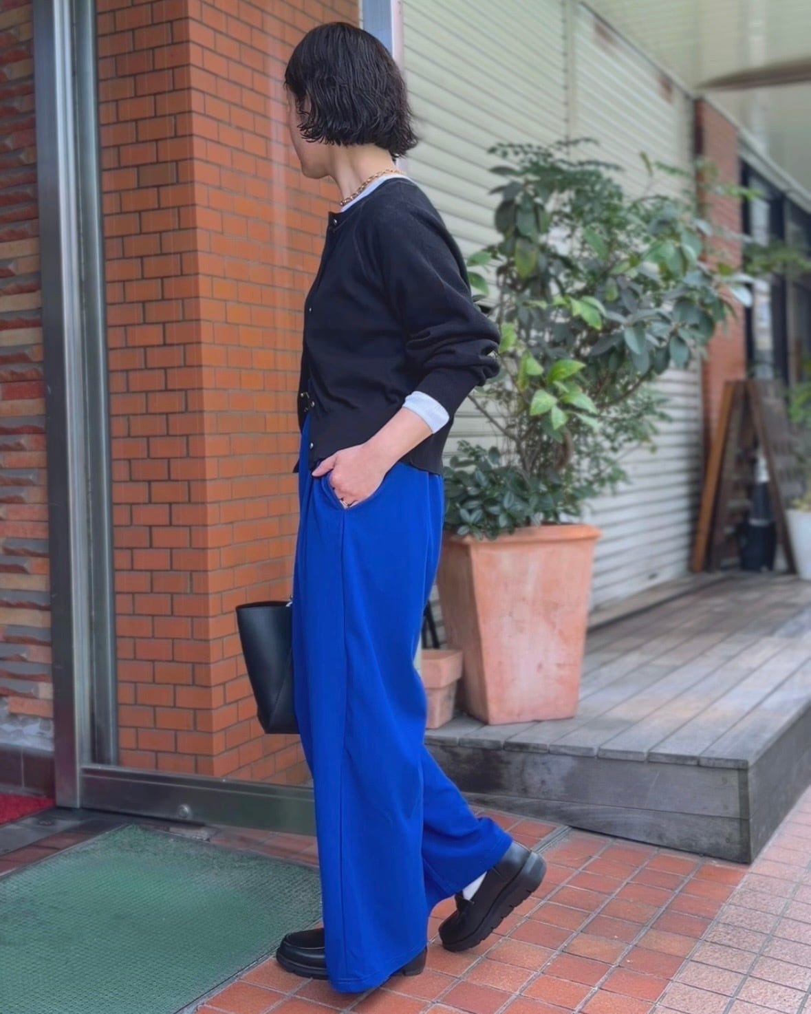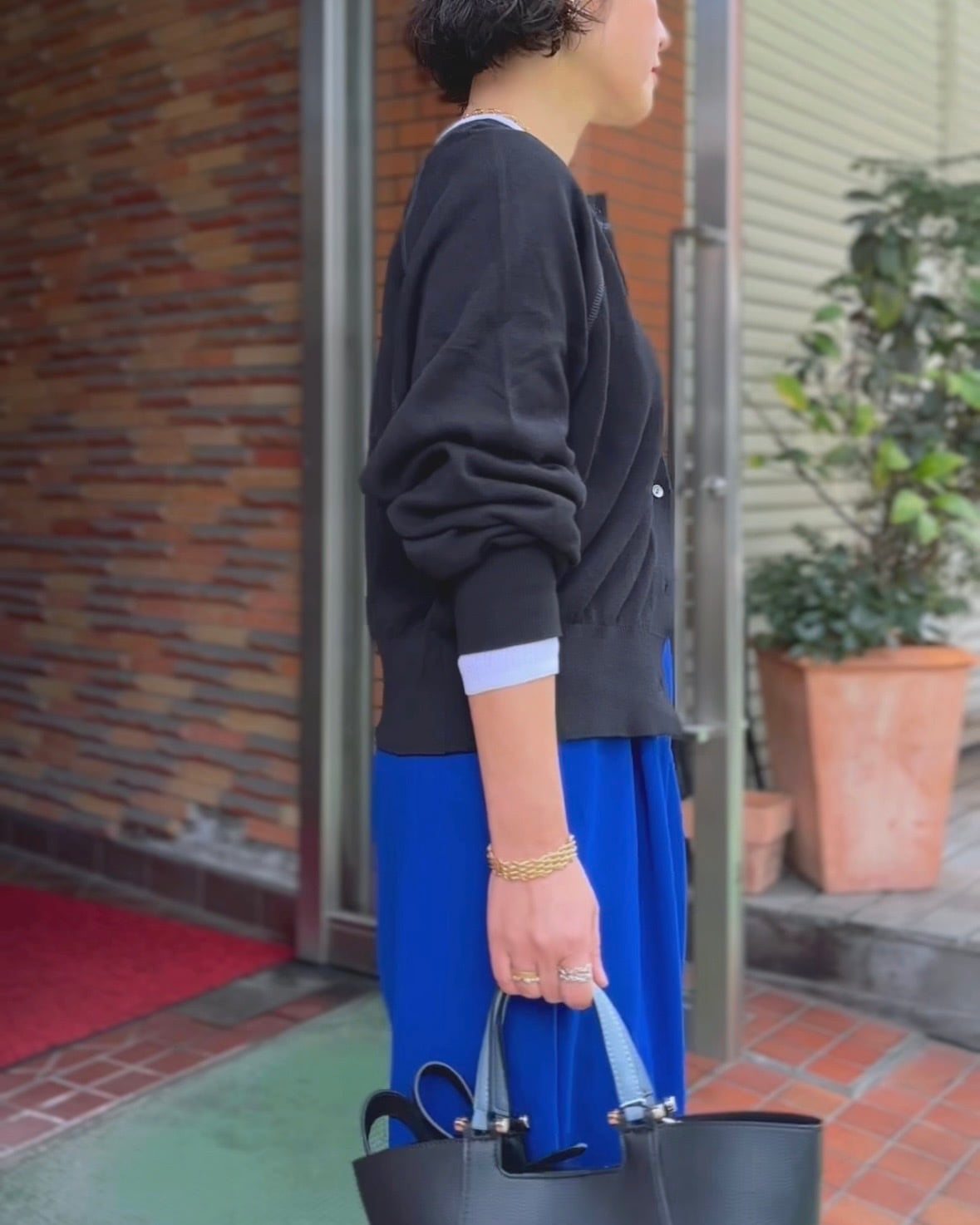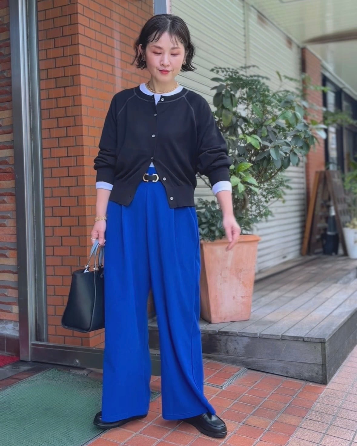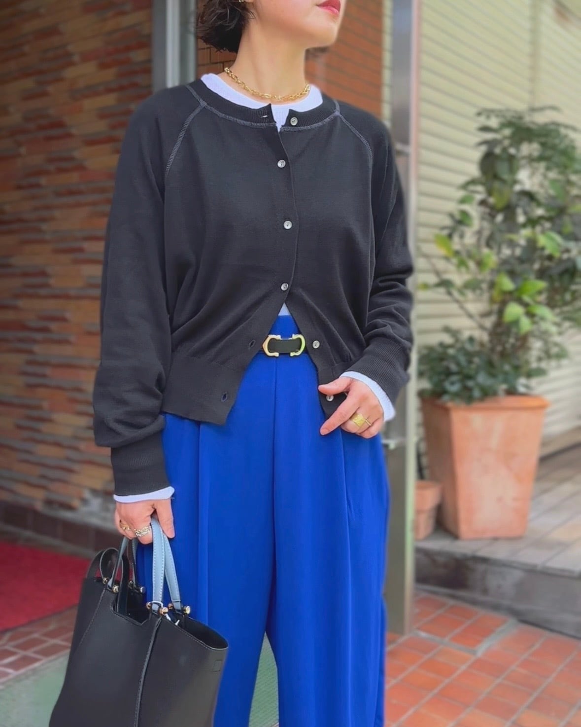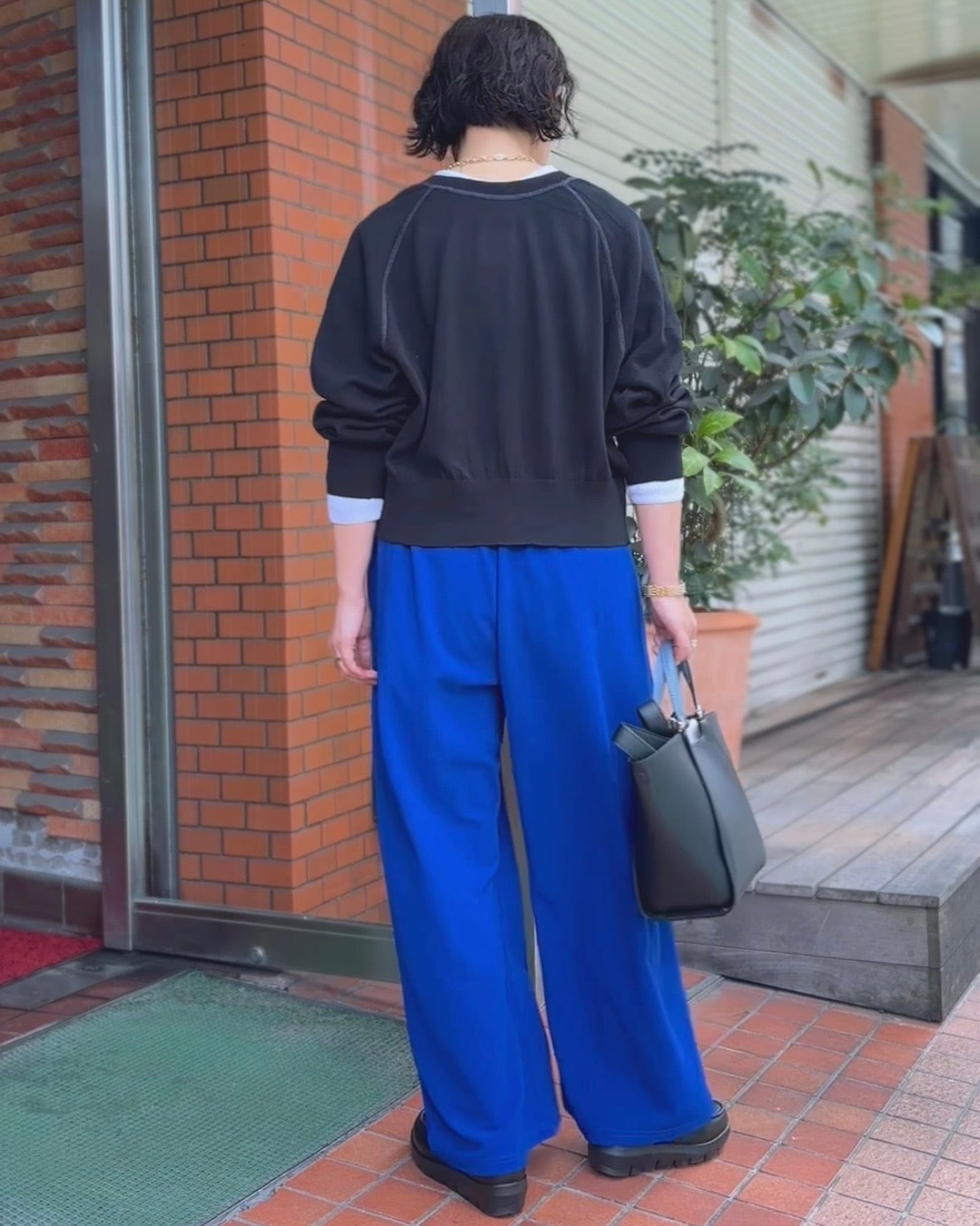 コンパクトな着丈と裾リブデザインがバランスを取りやすく、ワイドパンツやスカートとも好相性◎