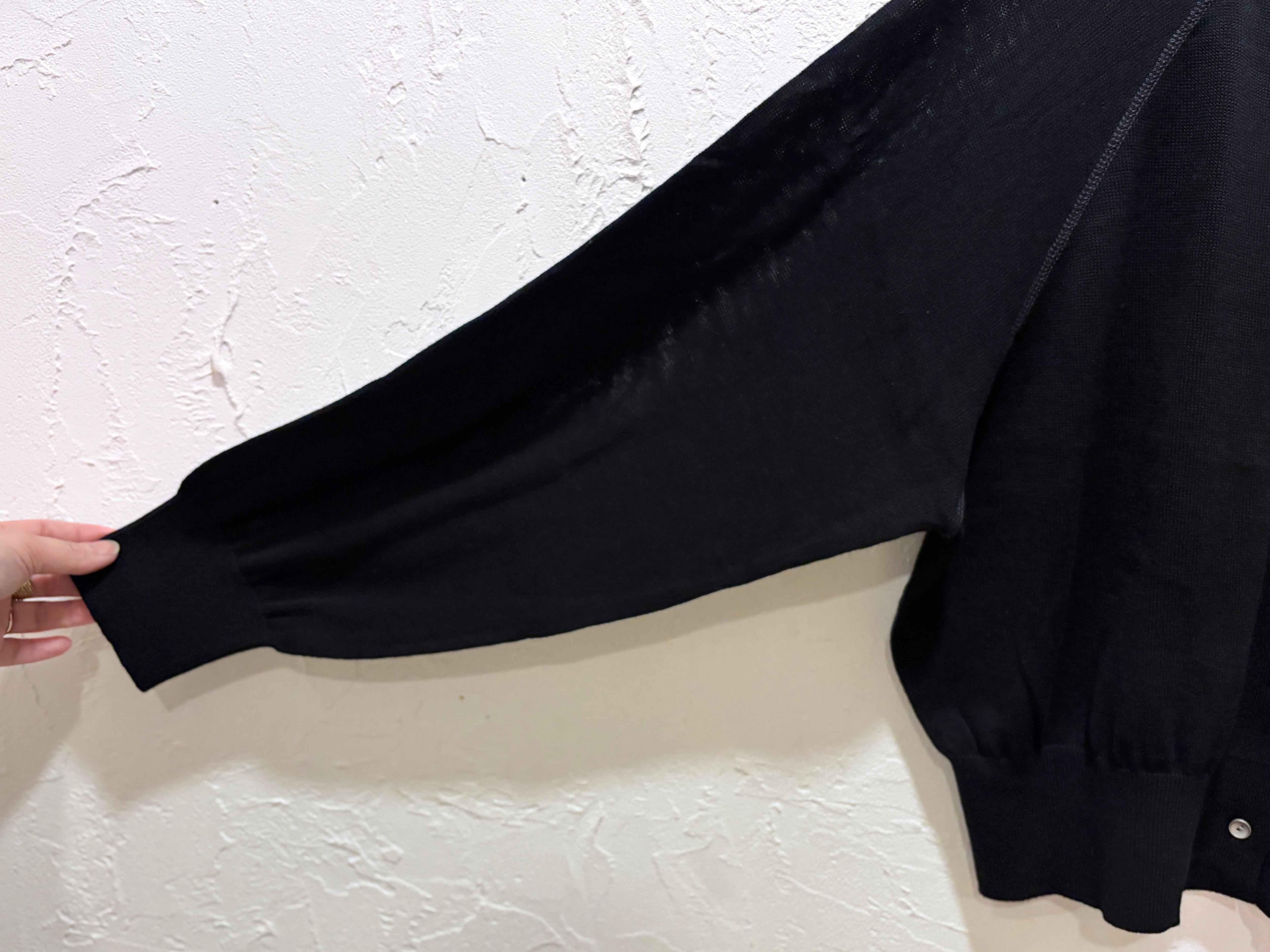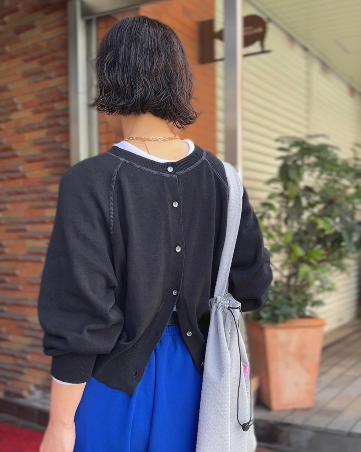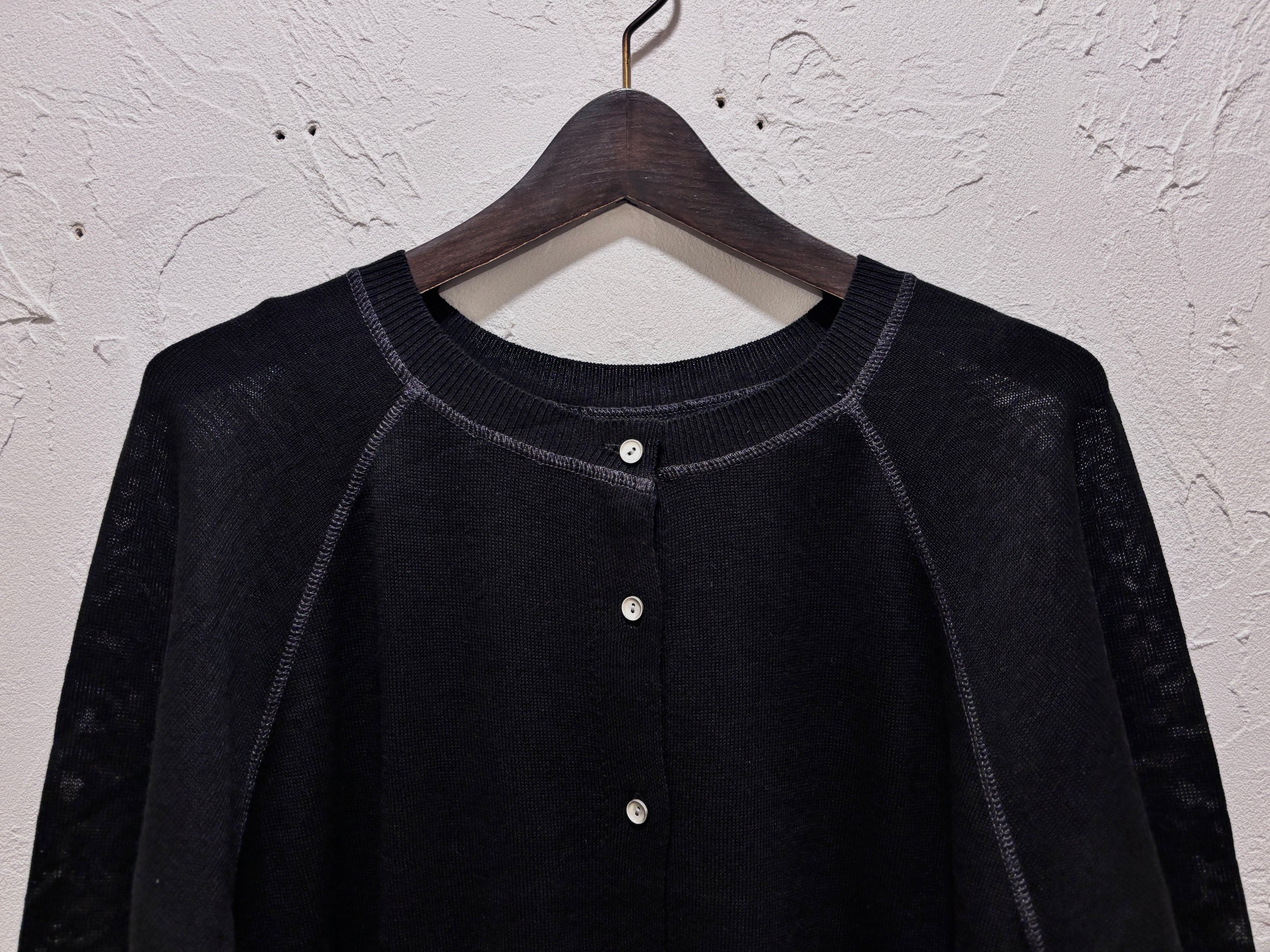 前後どちらでも着用できる2WAY仕様で、カーディガンとして羽織るのはもちろん、ボタンを後ろにしてプルオーバー風にも楽しめます。