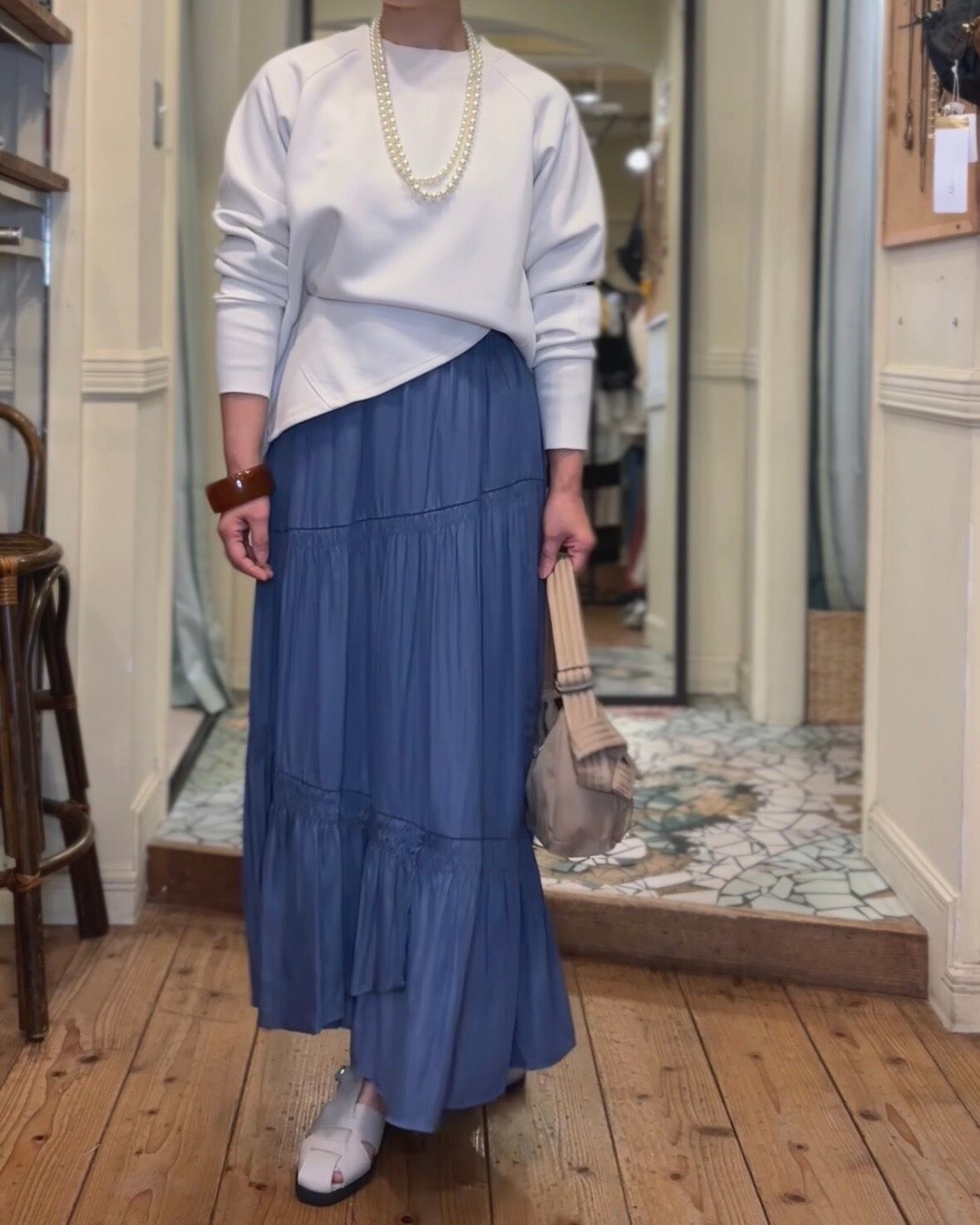 つるっとした表面感でキレイ見えするので、パンツにもスカートにも相性◎