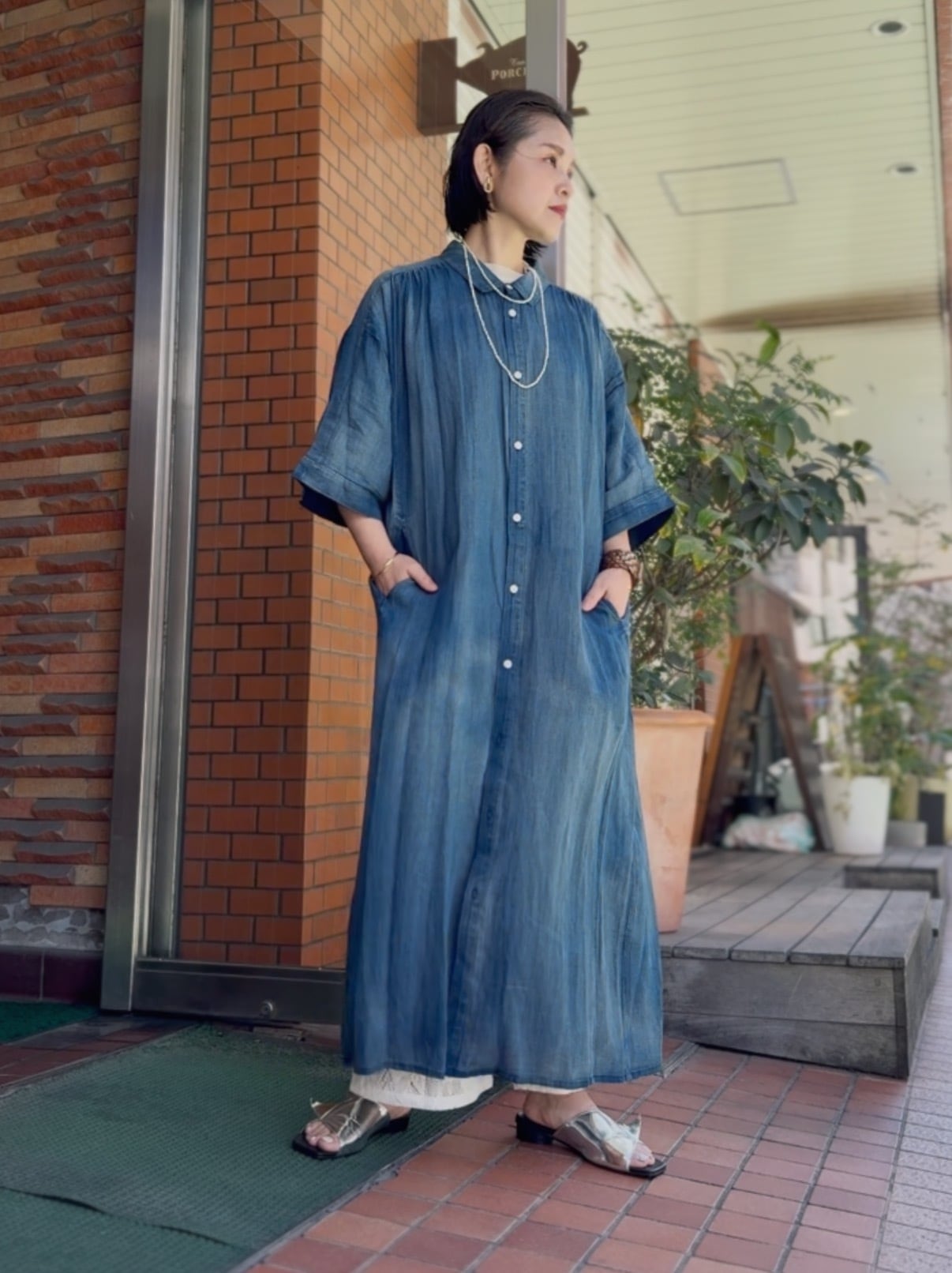 軽やかに揺れるシルエットが魅力の、デニムシャツワンピース。