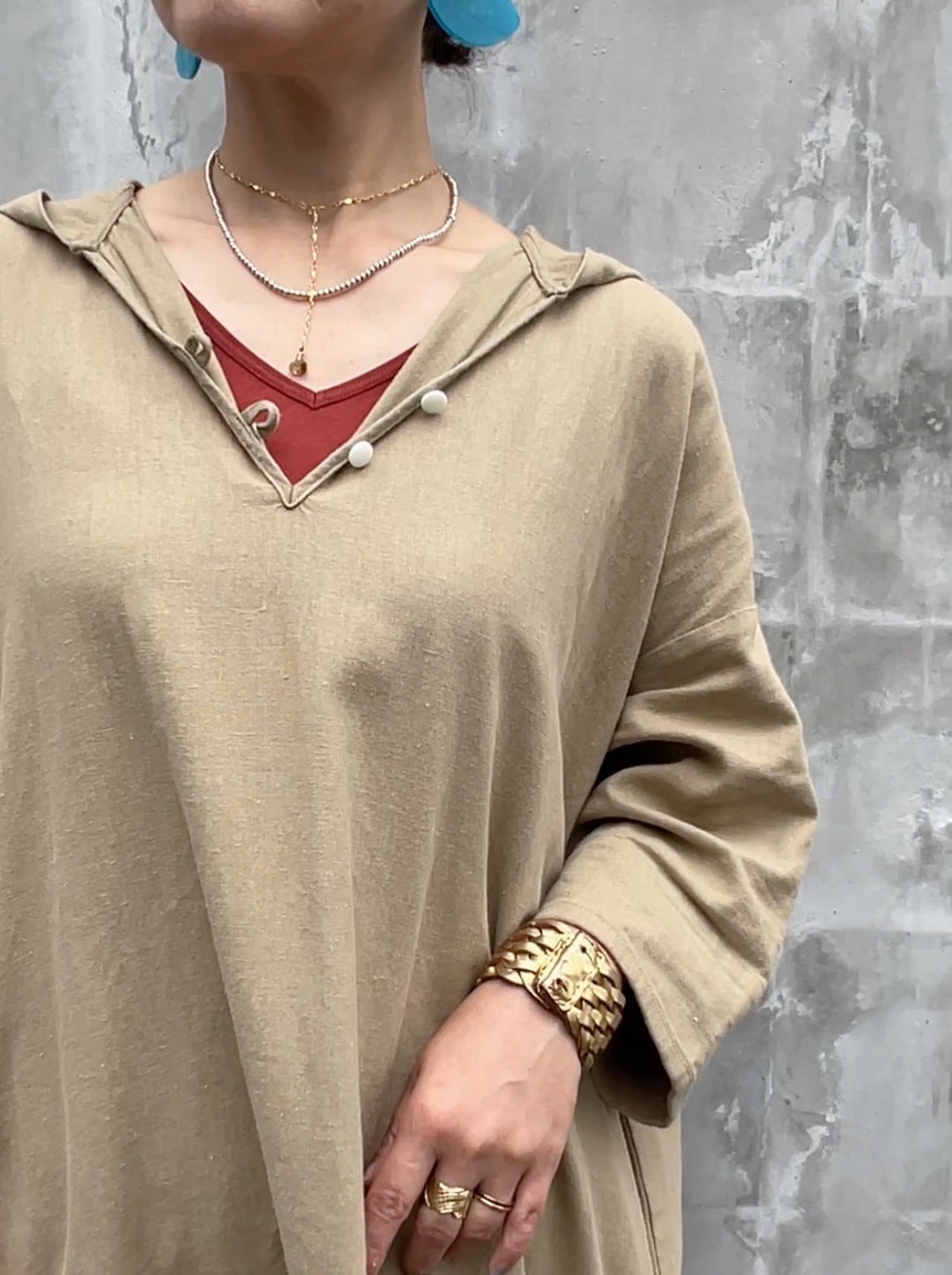 薄手の生地感で、春夏秋のレイヤードスタイルにも最適です。