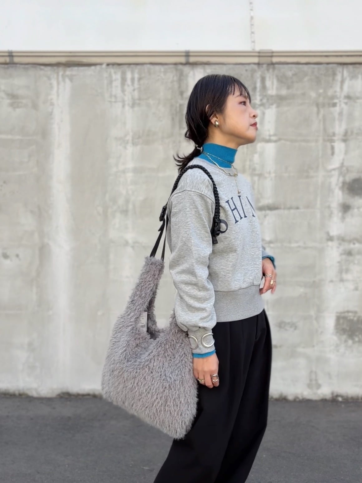 フロントのロゴデザインがコーデに映える裏起毛スウェット。