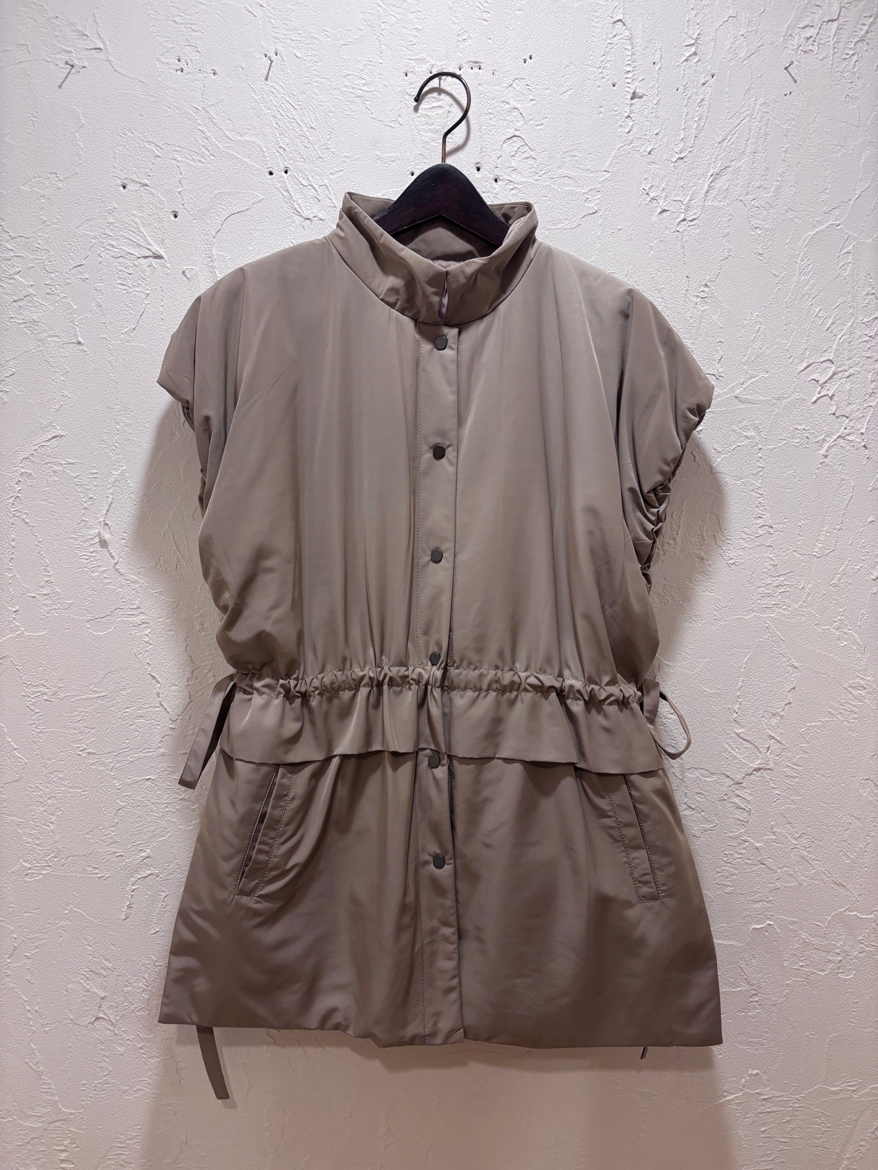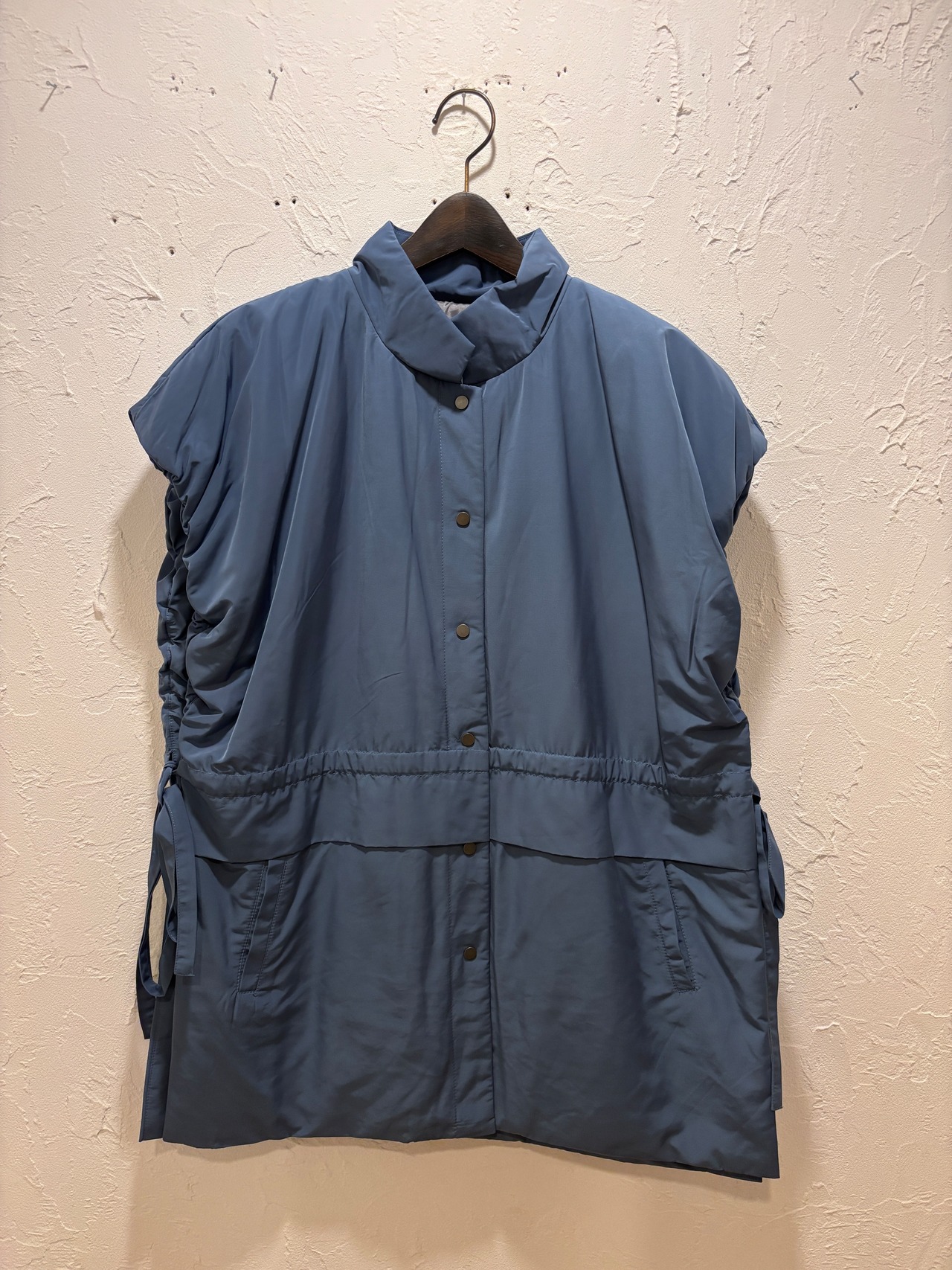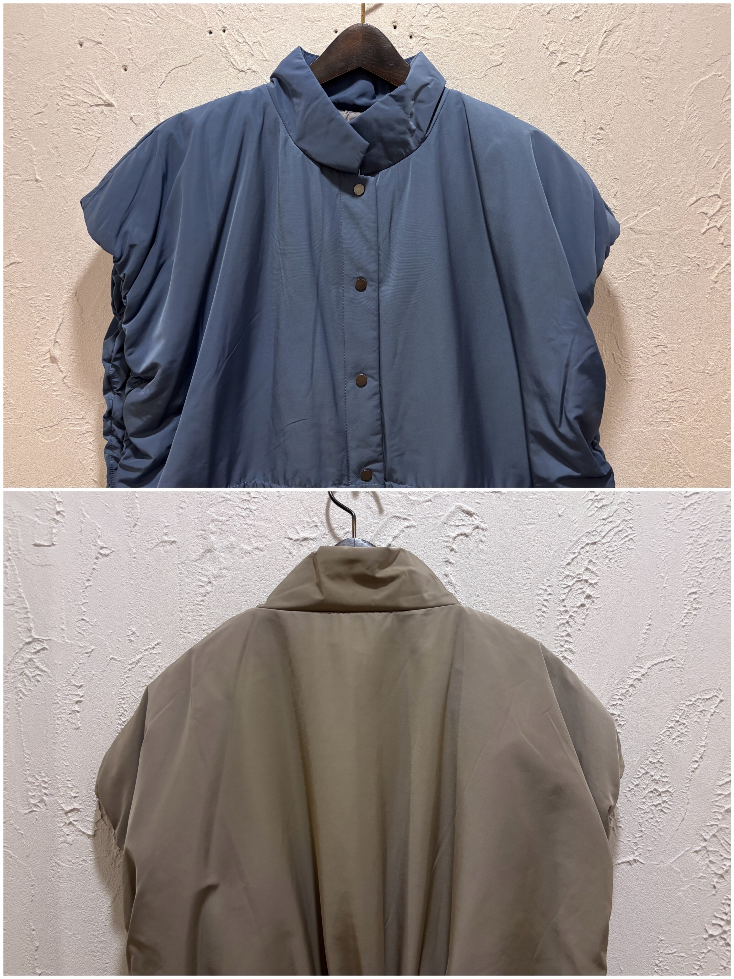 温かさとスタイリッシュさを兼ね備えた、ポンチョ風デザインの中綿ベスト。