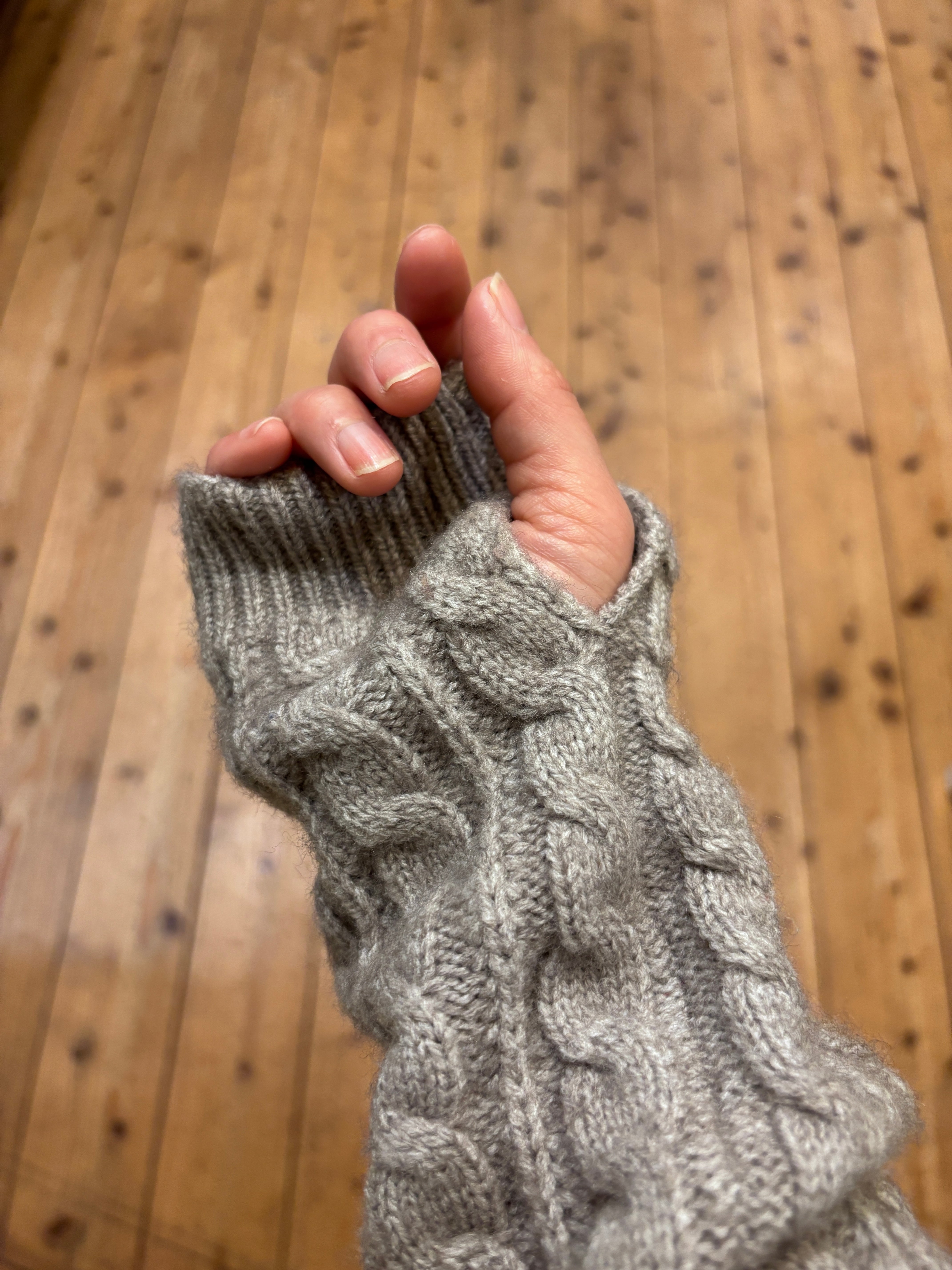 温かさとデザイン性を兼ね備えたケーブル編みアームウォーマー。
